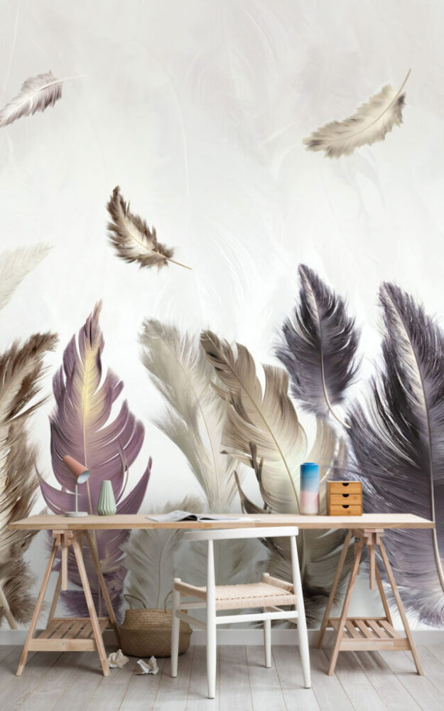 Farklı Renkteki Kuş Tüyü Desenli 3D Duvar Kağıdı üretimi, uygulanmasını isteyeceğiniz boyut ve konumuna uygun olarak talepleriniz doğrultusunda size özel imal edilir.
