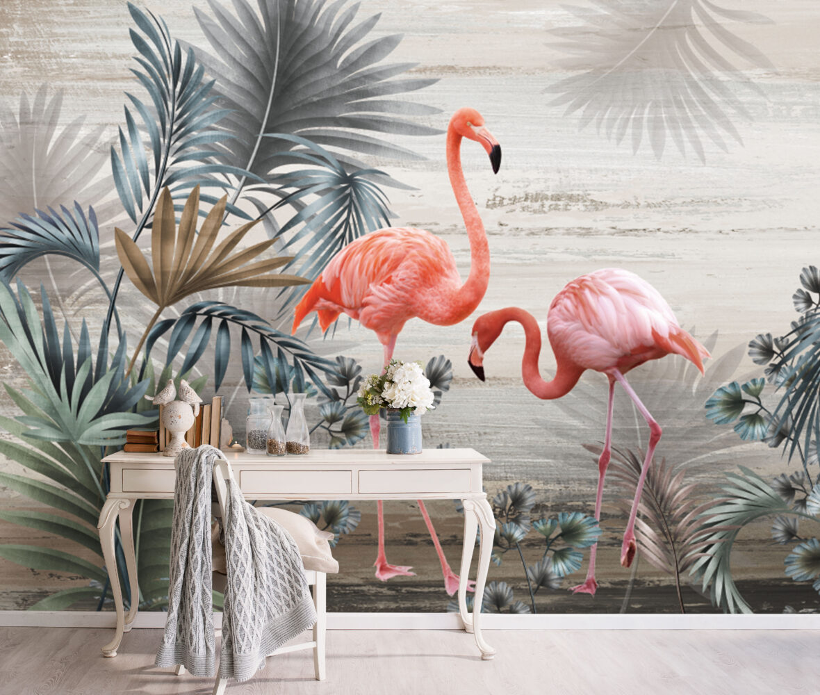 Flamingo Figürleri Tropikal Duvar Kağıdı üretimi, uygulanmasını isteyeceğiniz boyut ve konumuna uygun olarak talepleriniz doğrultusunda size özel imal edilir.