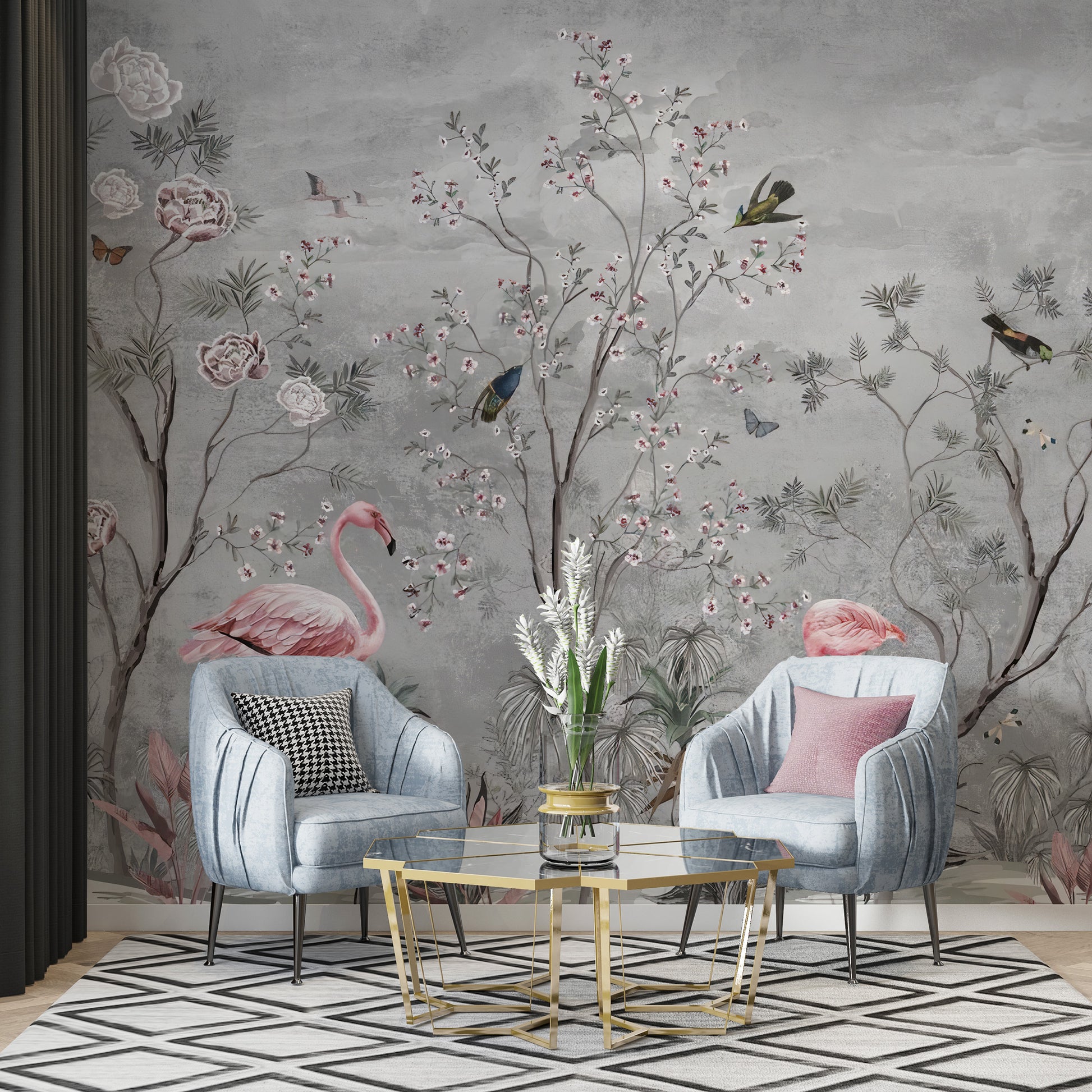 Flamingo Kuşları ve Gül Ağacı Duvar Kağıdı Duvar Kağıdı Ürün Bilgisi