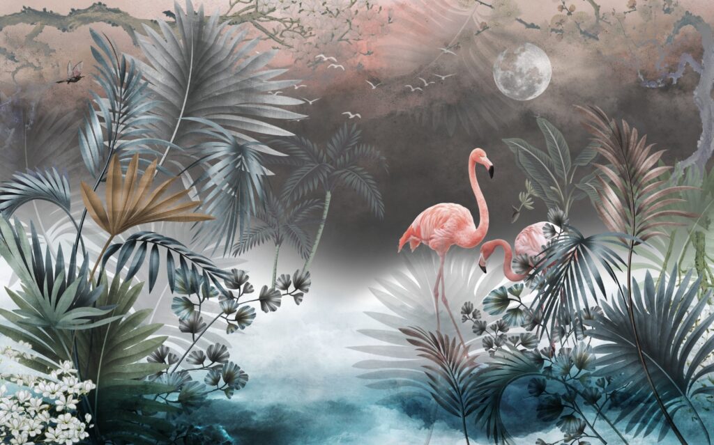 Flamingo ve Tropikal 3D Duvar Kağıdı