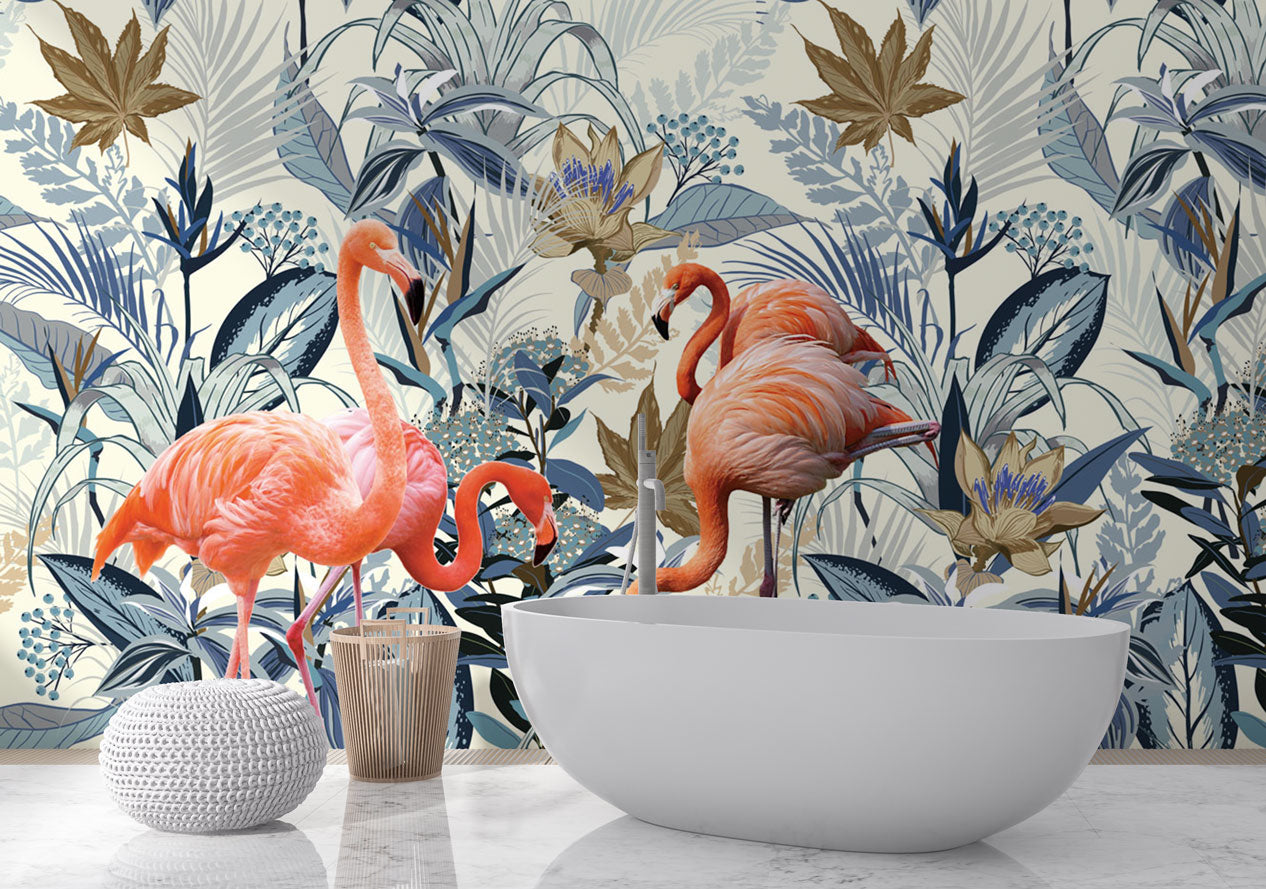 Flamingolar ve Mavi Çiçekler Duvar Kağıdı Duvar Kağıdı Ürün Bilgisi