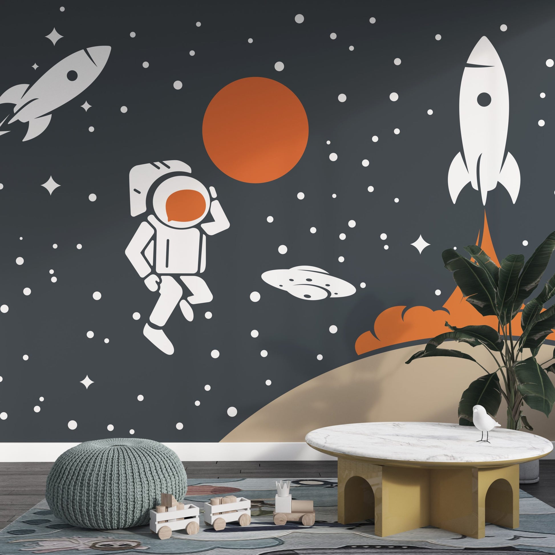 Füze Ay ve Astronot Uzay Çağı Duvar Kağıdı üretimi, uygulanmasını isteyeceğiniz boyut ve konumuna uygun olarak talepleriniz doğrultusunda size özel imal edilir.