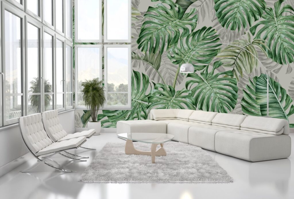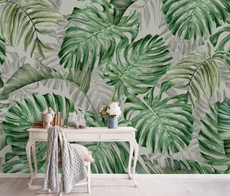 Geniş Yaprak Desenli 3D Duvar Kağıdı