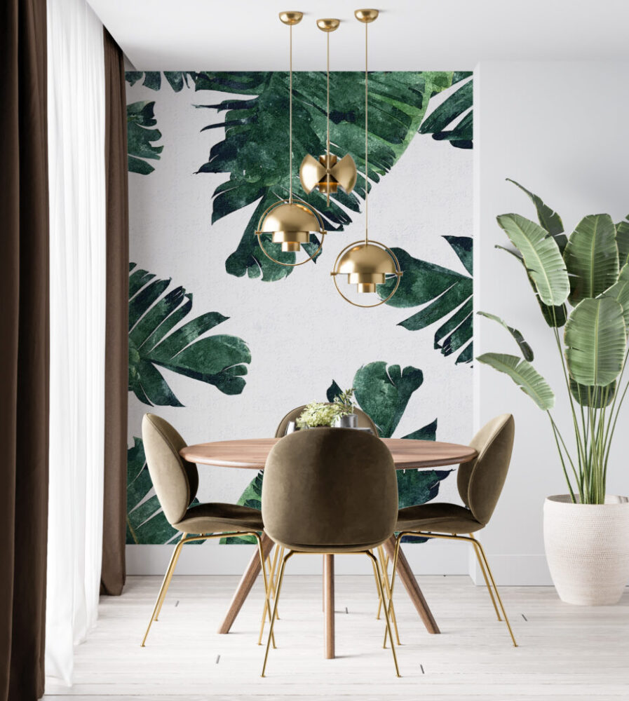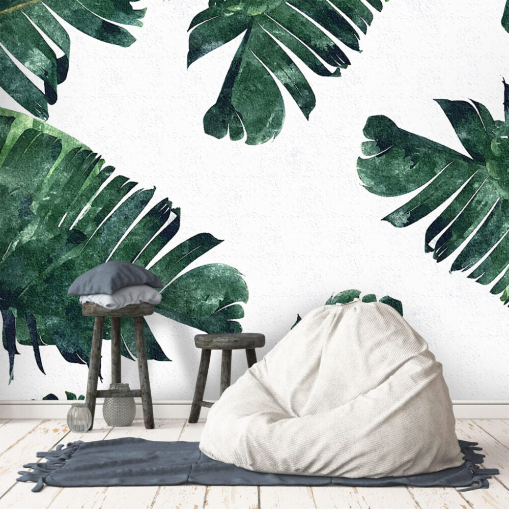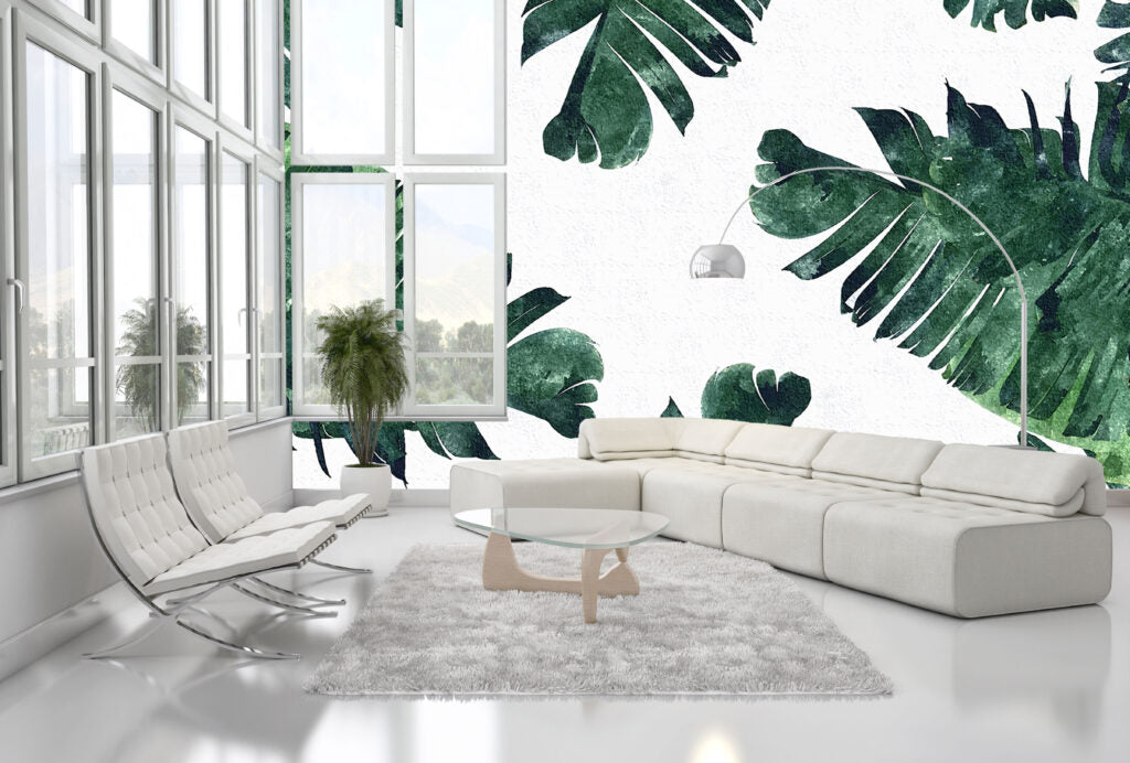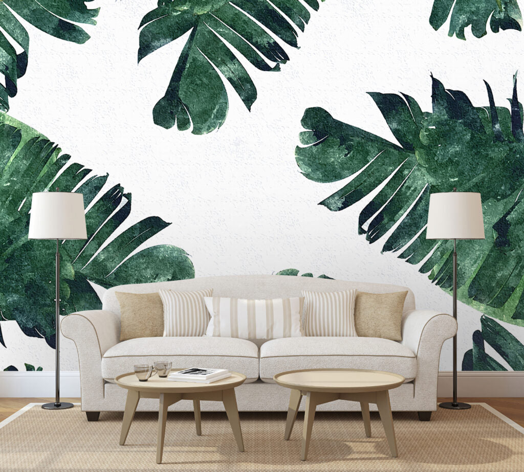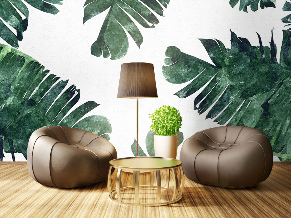 Geniş Yapraklı Bitki Desenli 3D Duvar Kağıdı