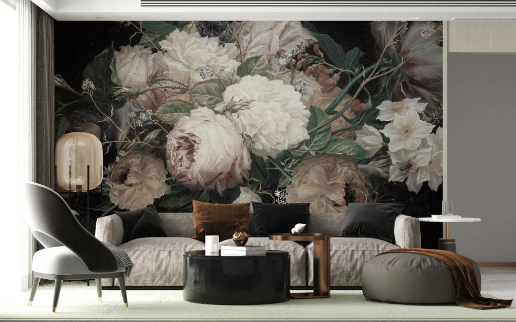 Geniş Yapraklı Gül Desenli 3D Duvar Kağıdı