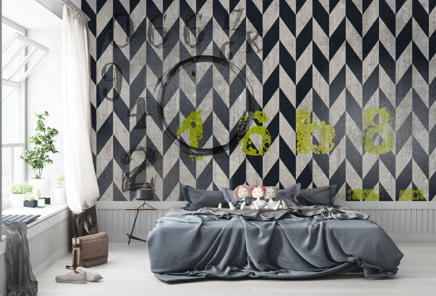 Geometrik Desenler ve Yazılar Duvar Kağıdı | Duvar Kağıdı Marketi üretimi, uygulanmasını isteyeceğiniz boyut ve konumuna uygun olarak talepleriniz doğrultusunda size özel imal edilir.