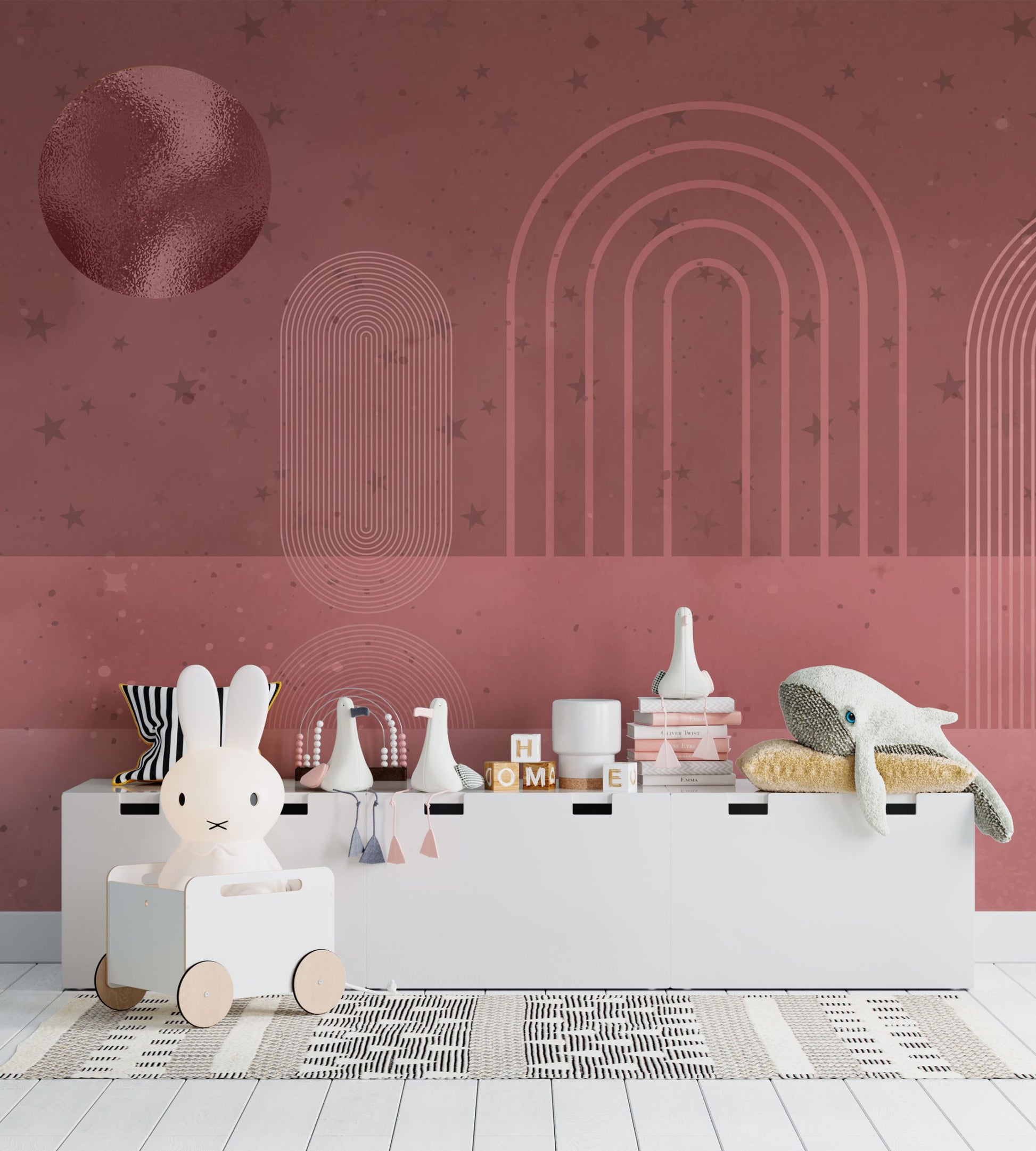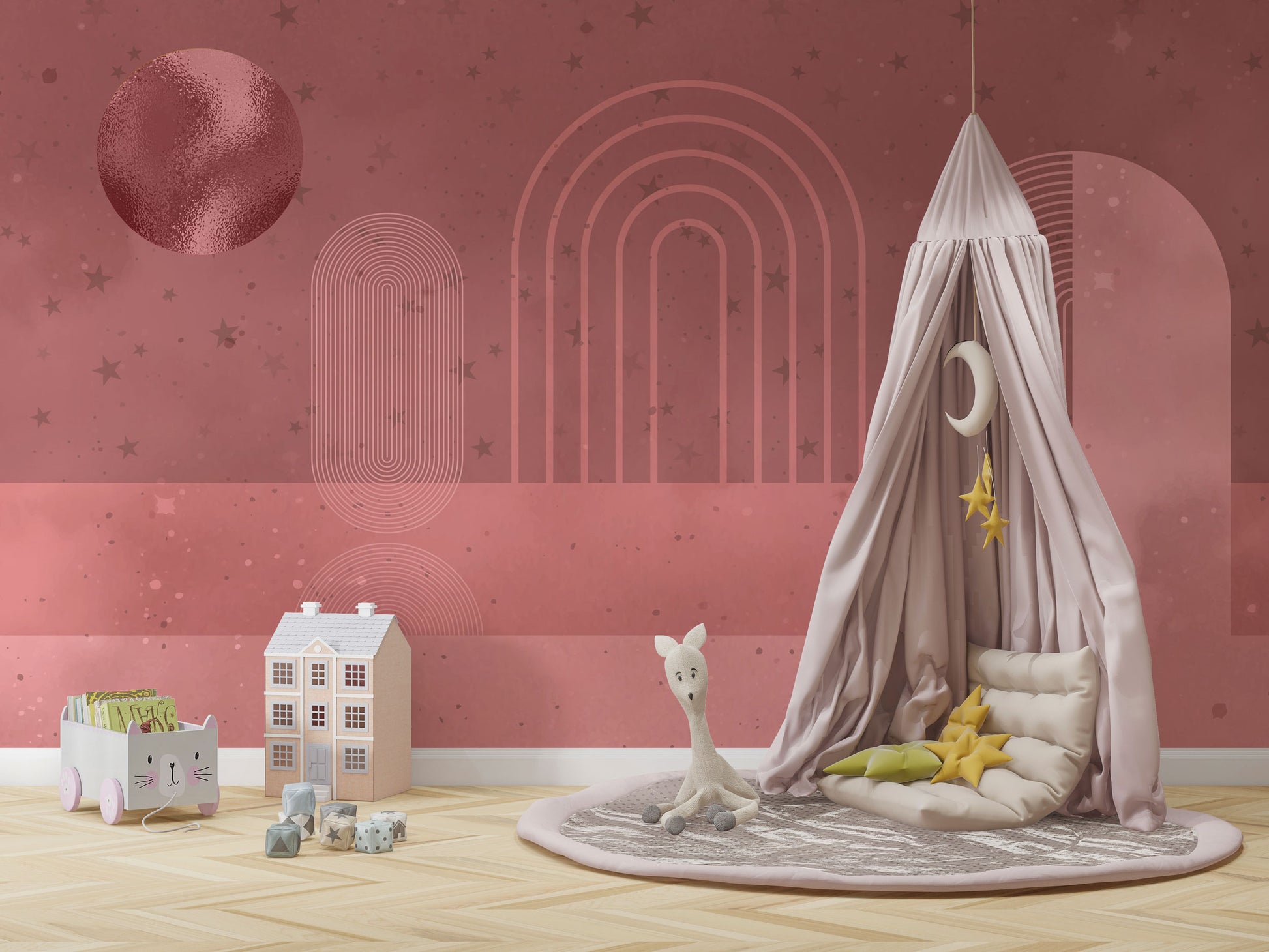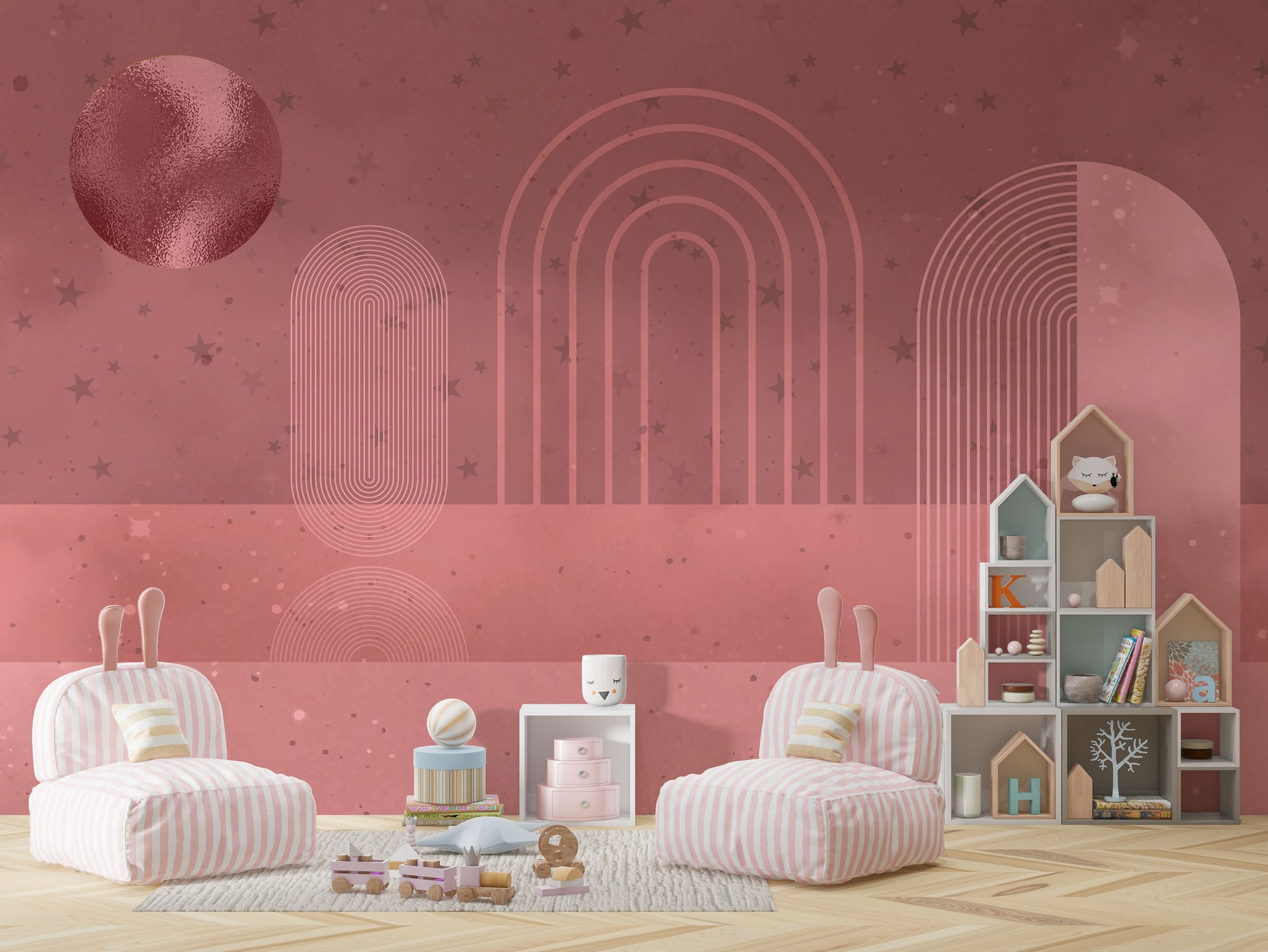Geometrik Soyut Pembe Tonlarda Yıldızlı Duvar Kağıdı üretimi, uygulanmasını isteyeceğiniz boyut ve konumuna uygun olarak talepleriniz doğrultusunda size özel imal edilir.