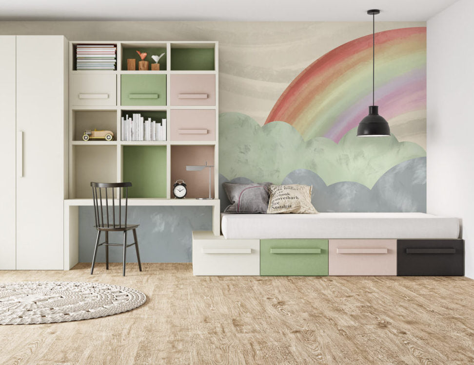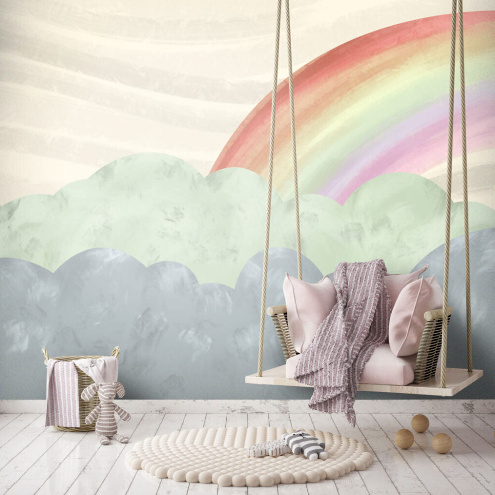 Gökkuşağı ve Bulut Desenli Duvar Kağıdı üretimi, uygulanmasını isteyeceğiniz boyut ve konumuna uygun olarak talepleriniz doğrultusunda size özel imal edilir.