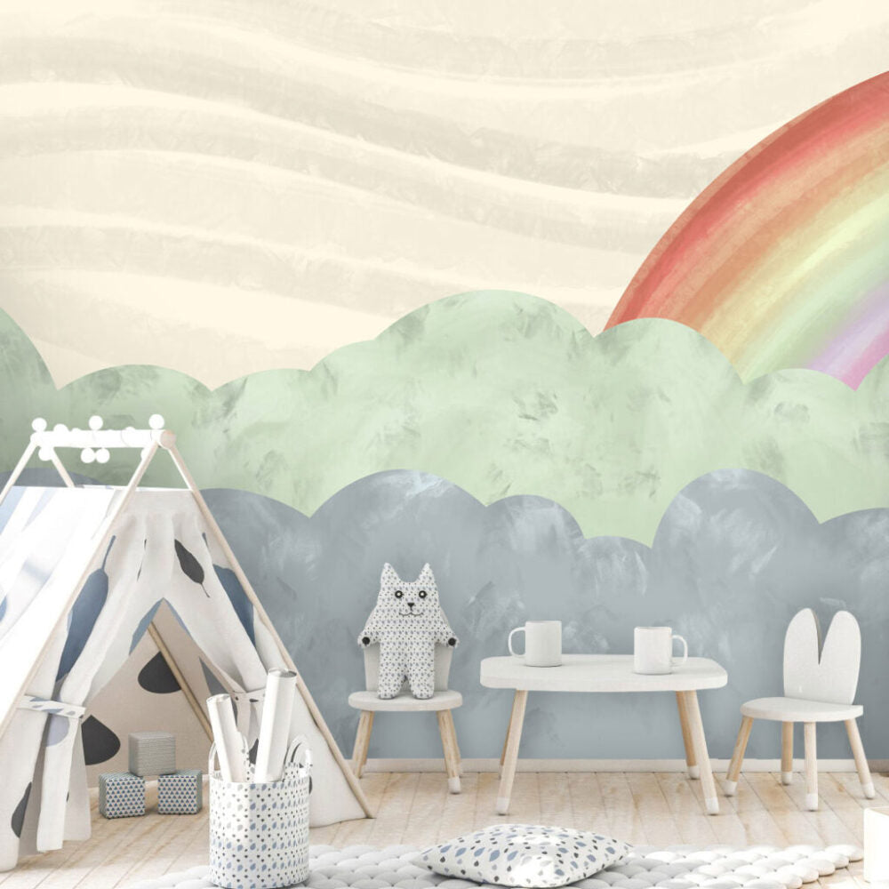 Gökkuşağı ve Bulut Desenli Duvar Kağıdı
