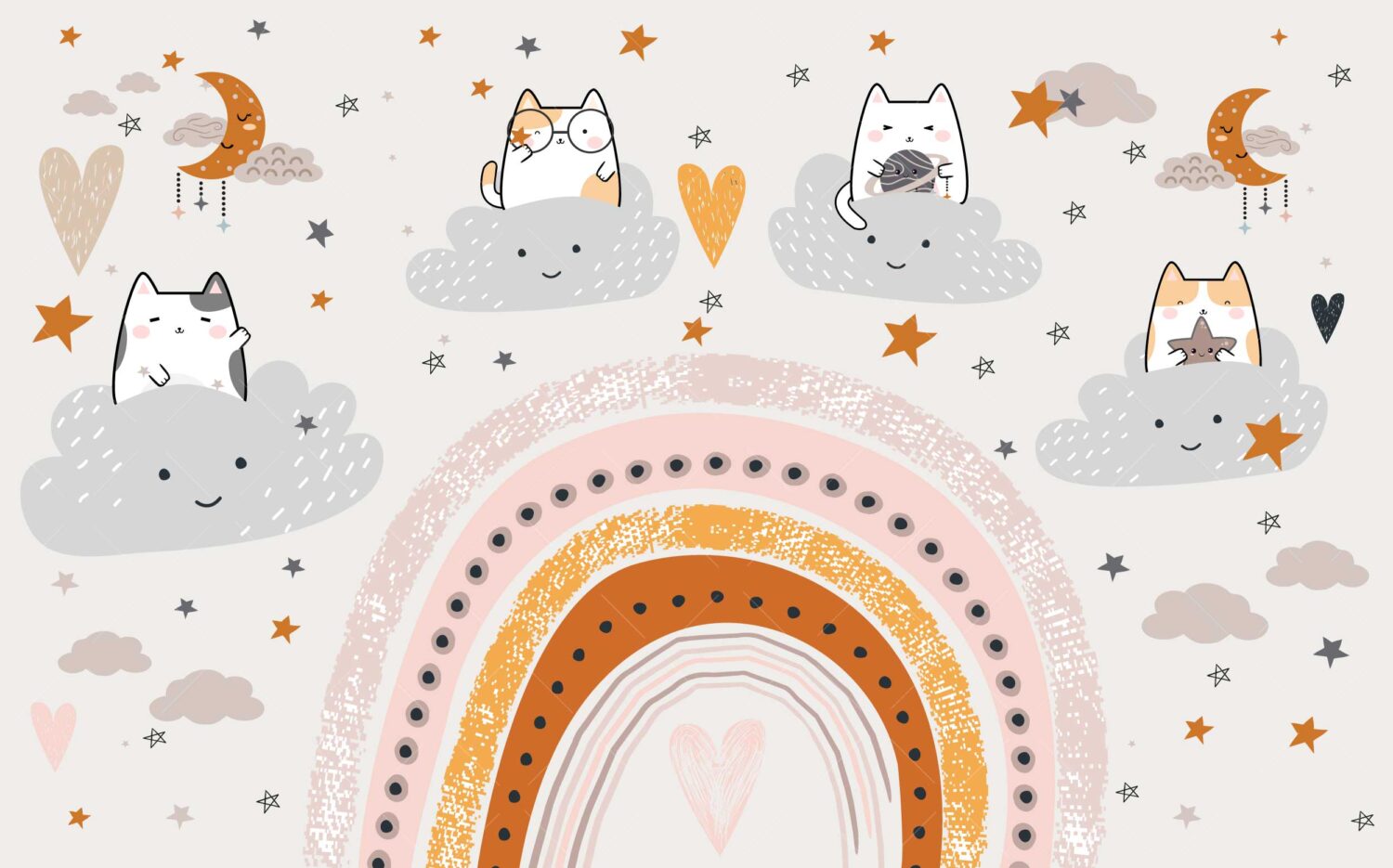 Gökkuşağı ve Bulutlardaki Kediler Duvar Kağıdı Duvar Kağıdı Ürün Bilgisi