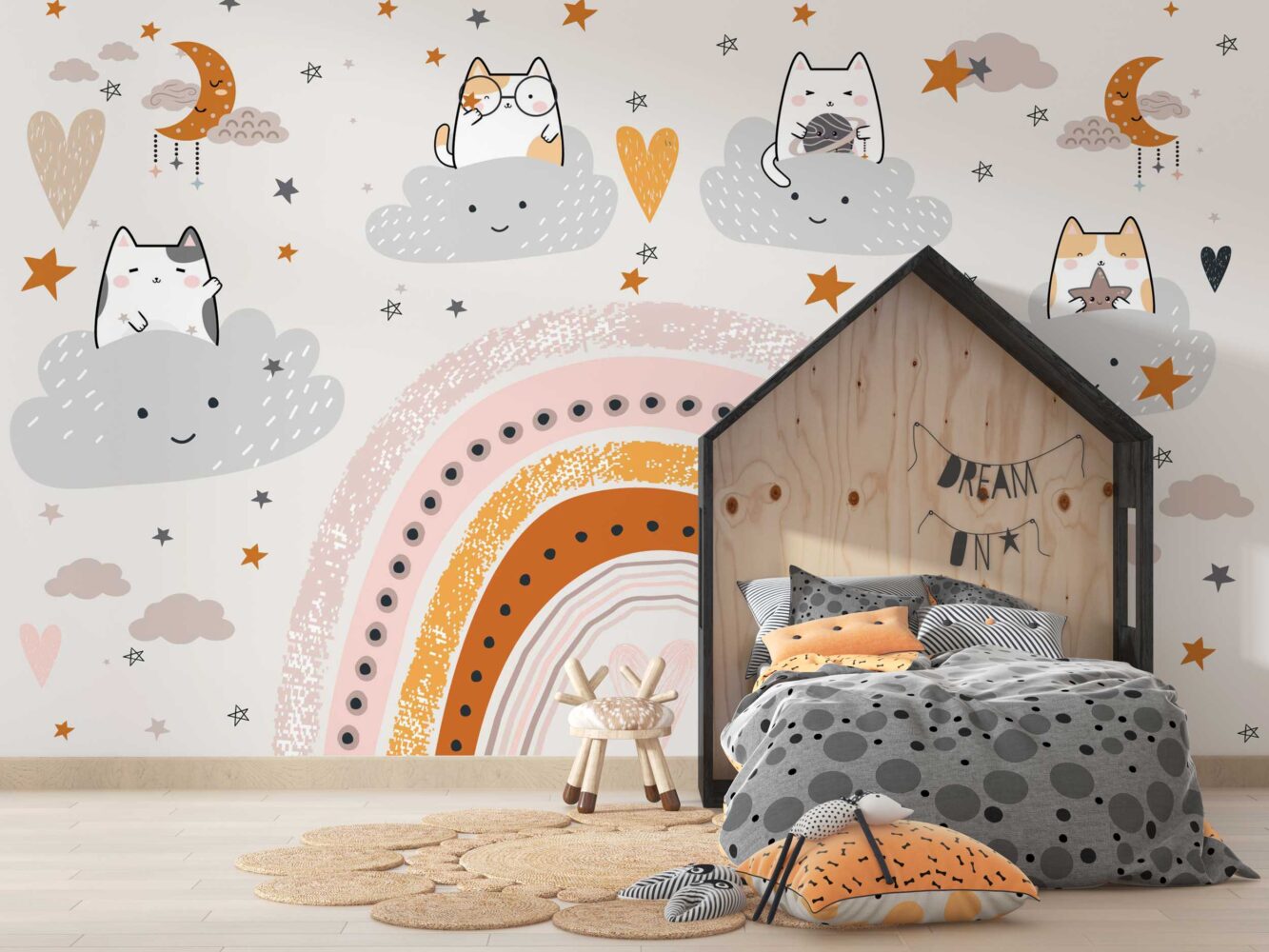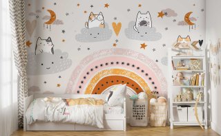 Gökkuşağı ve Bulutlardaki Kediler Duvar Kağıdı üretimi, uygulanmasını isteyeceğiniz boyut ve konumuna uygun olarak talepleriniz doğrultusunda size özel imal edilir.