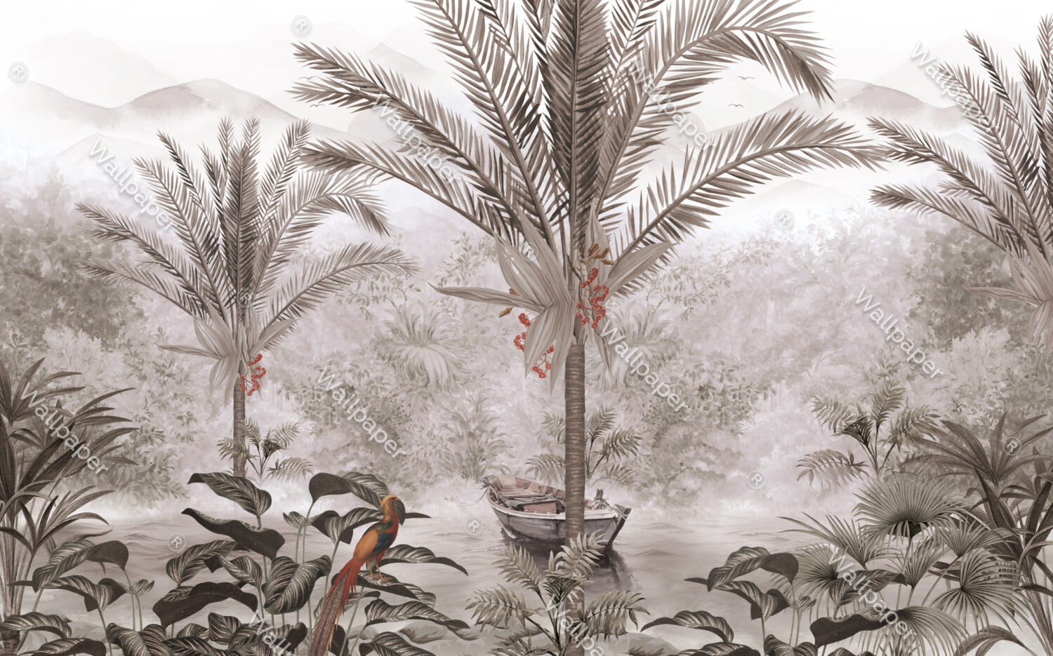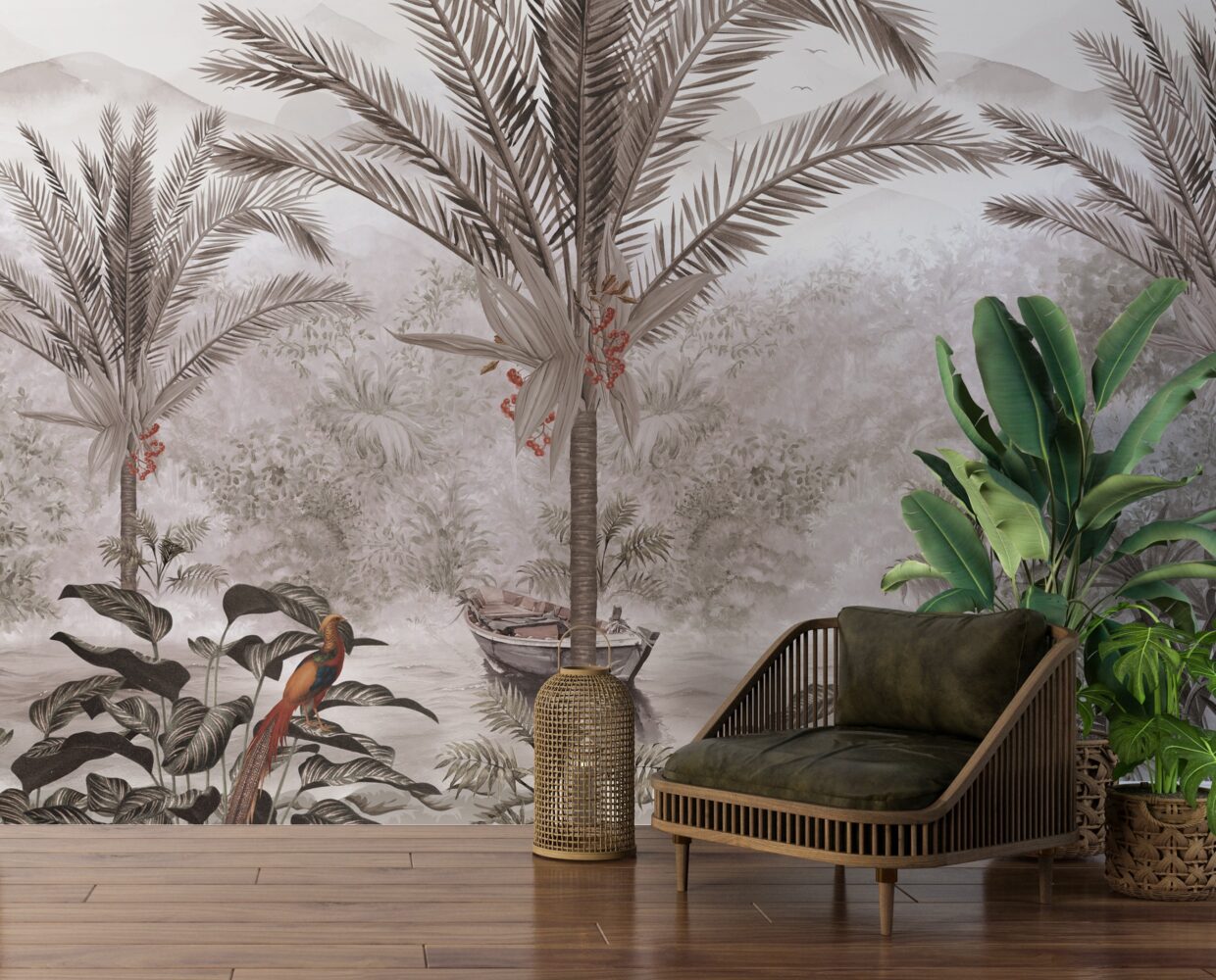 Göl Kenarında Hurma Ağaçları ve Kayık Duvar Kağıdı Duvar Kağıdı Ürün Bilgisi