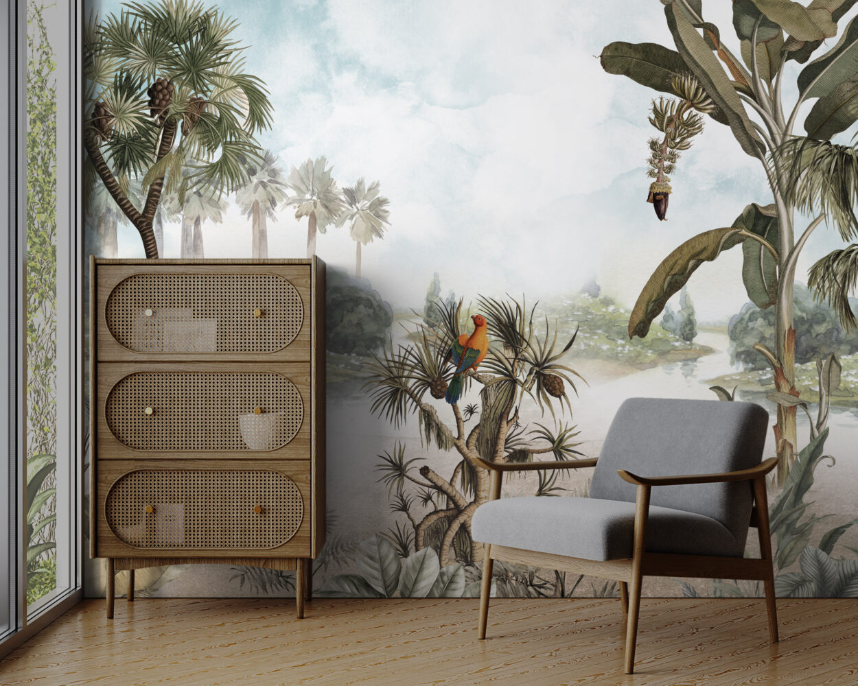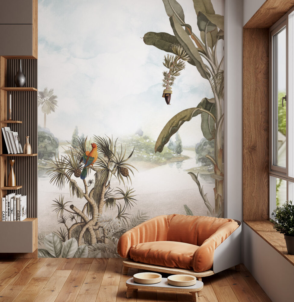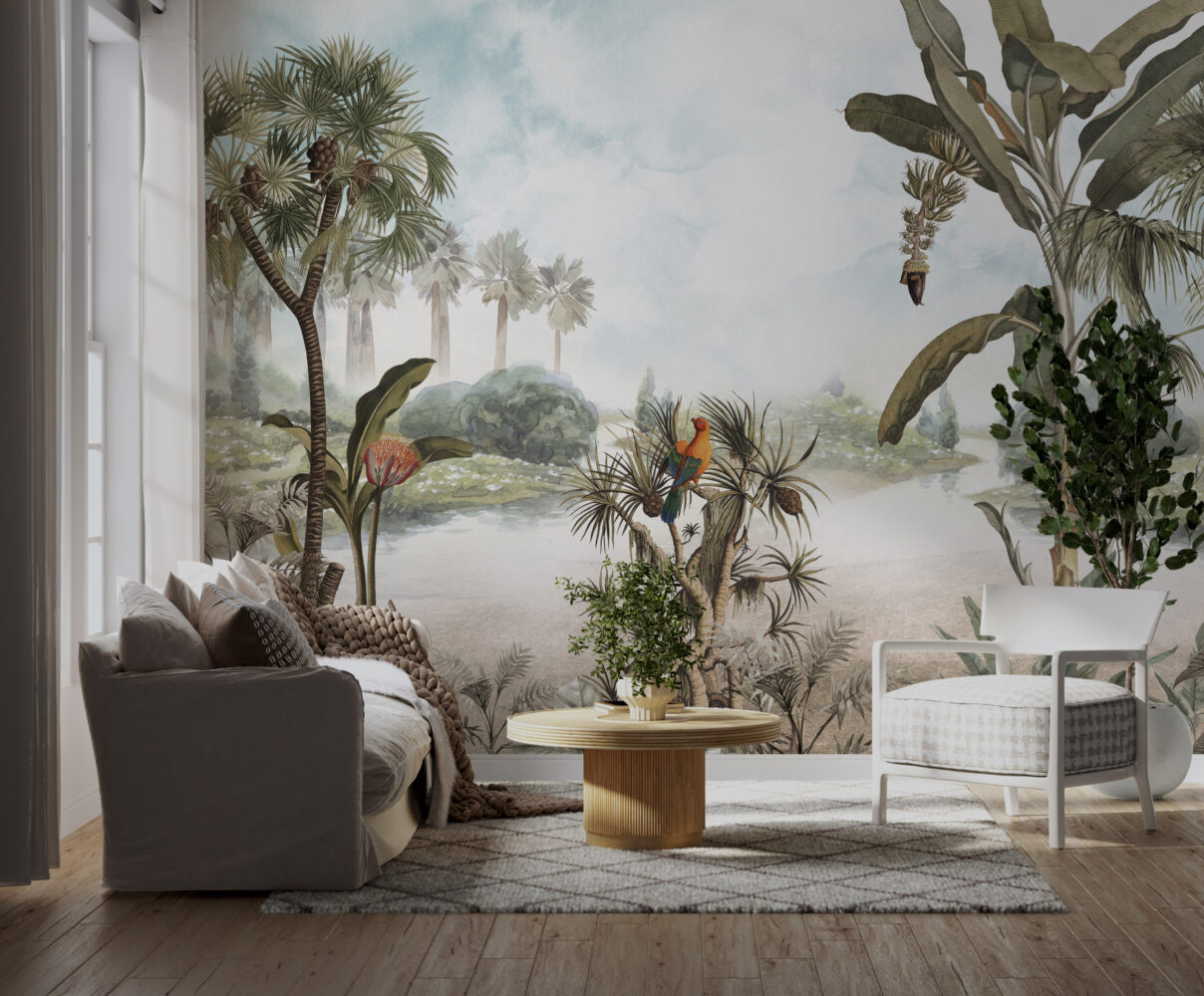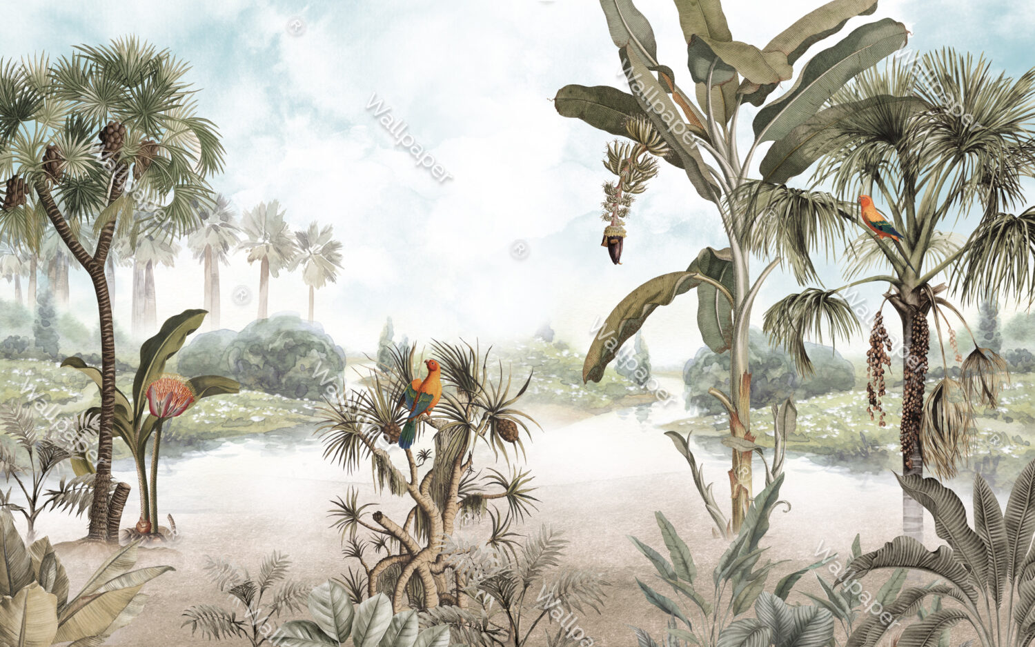 Göl Kenarında Hurma Muz Ağaçları ve Kuşlar Duvar Kağıdı Duvar Kağıdı Ürün Bilgisi