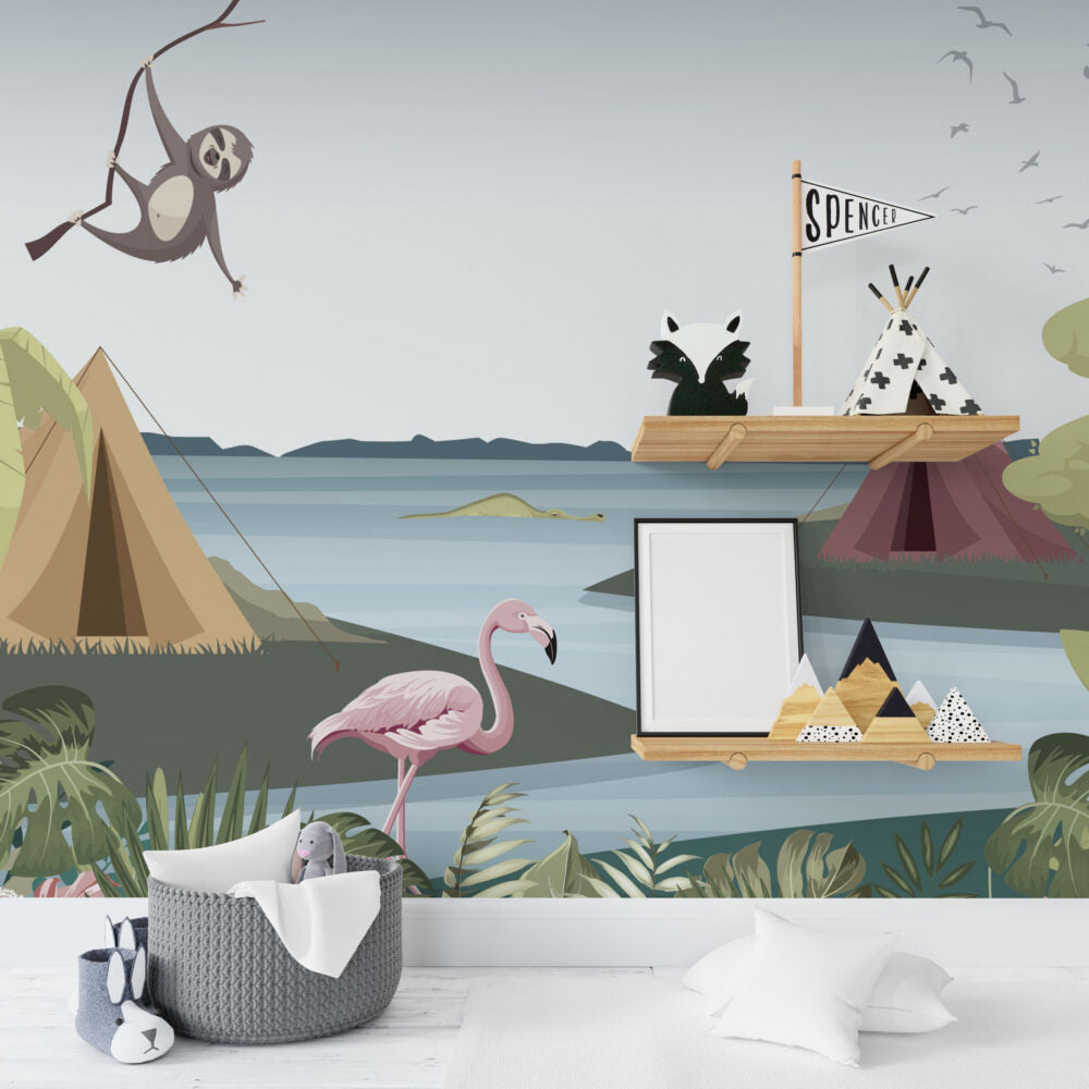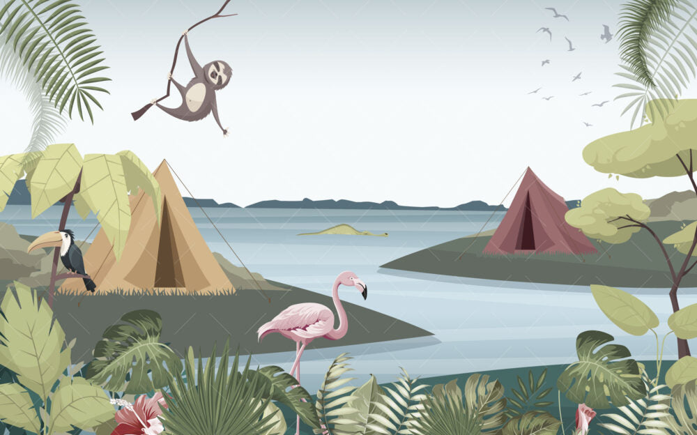 Göl Kenarındaki Kamp Alanı Duvar Kağıdı | Duvar Kağıdı Marketi üretimi, uygulanmasını isteyeceğiniz boyut ve konumuna uygun olarak talepleriniz doğrultusunda size özel imal edilir.