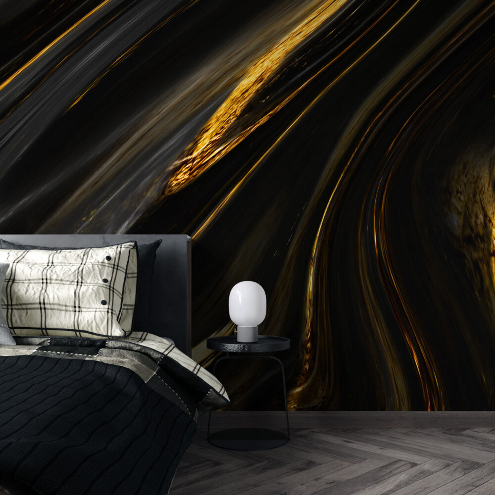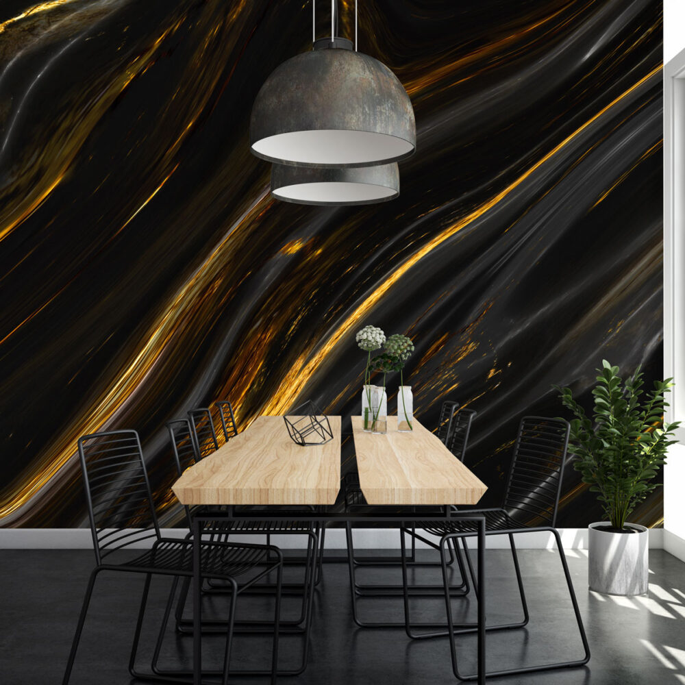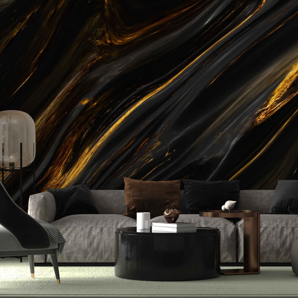 Gold Damarlı Siyah Mermer Desen Duvar Kağıdı