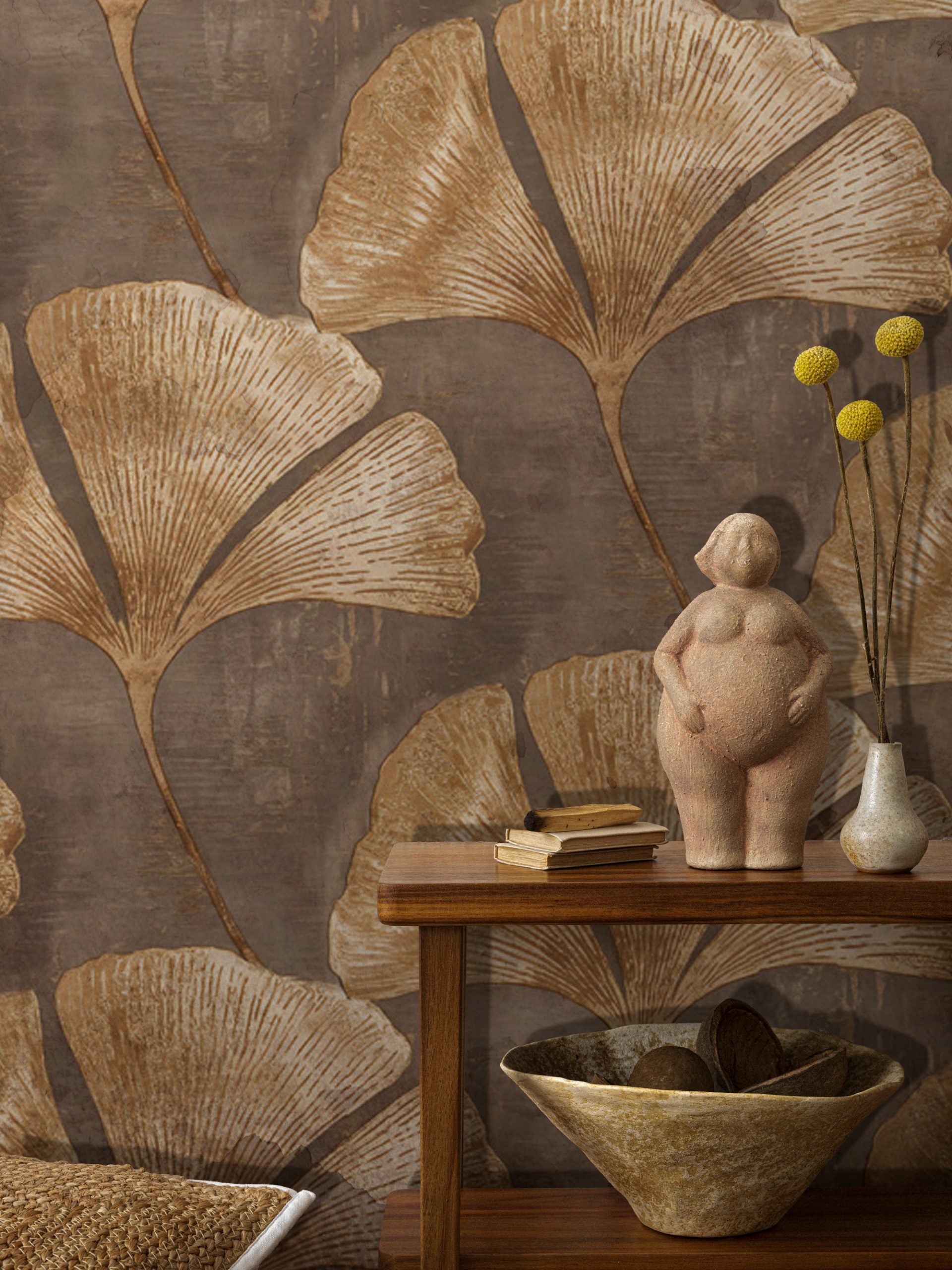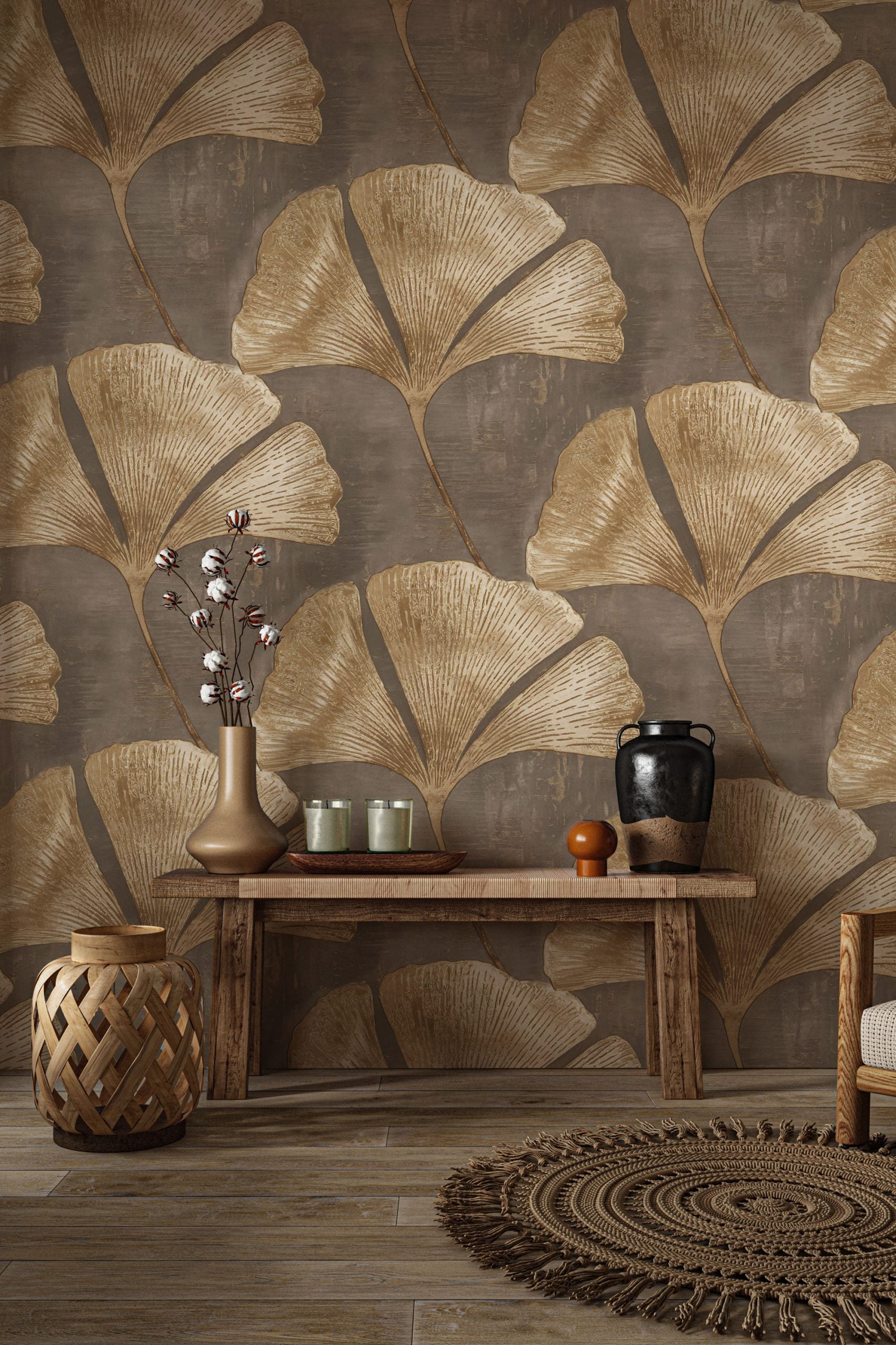 Gold Tonlarda Altın Yaprakları Desenli Duvar Kağıdı Duvar Kağıdı Ürün Bilgisi