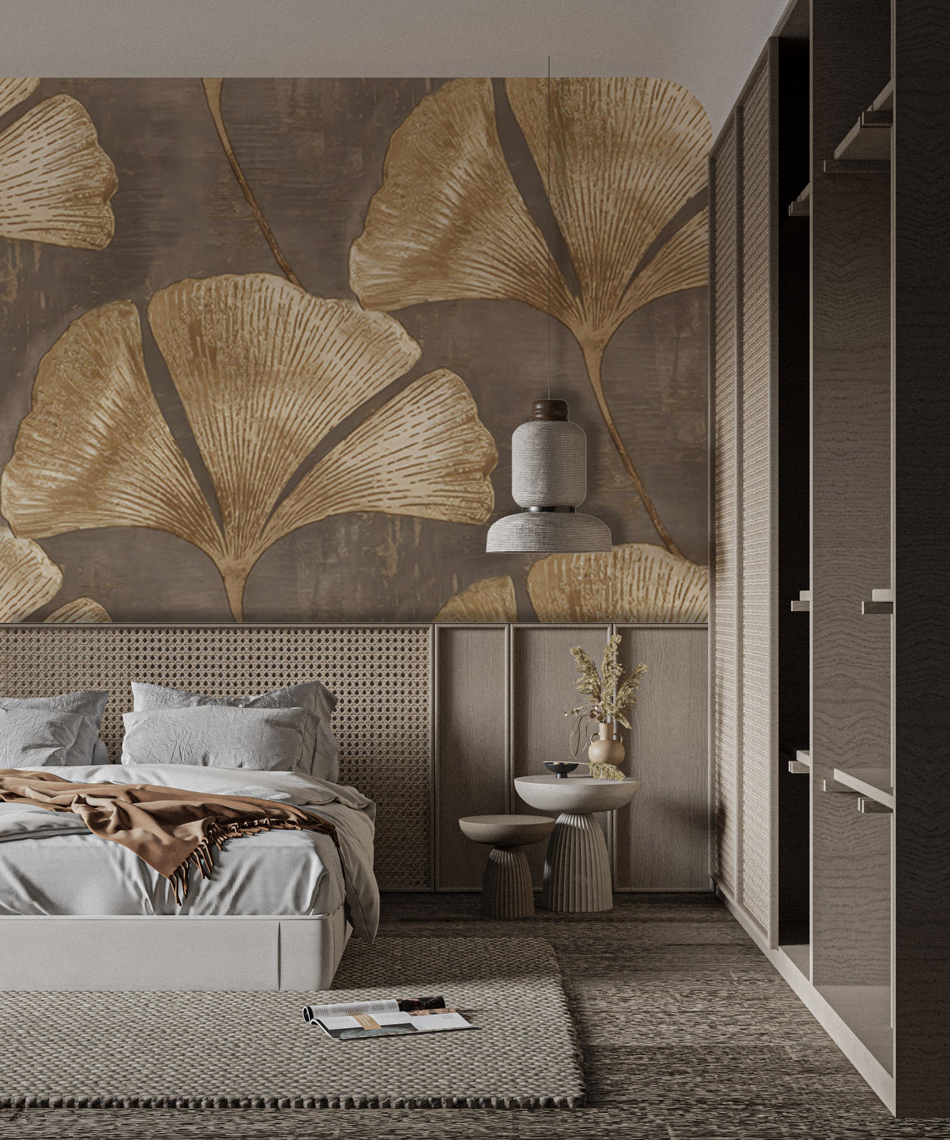 Gold Tonlarda Altın Yaprakları Desenli Duvar Kağıdı üretimi, uygulanmasını isteyeceğiniz boyut ve konumuna uygun olarak talepleriniz doğrultusunda size özel imal edilir.