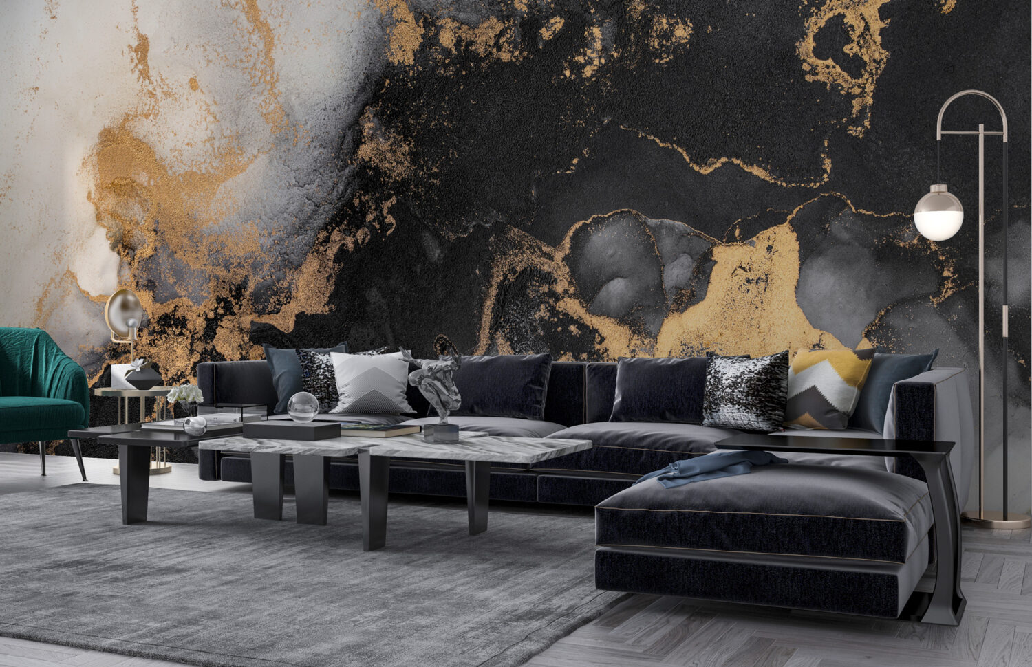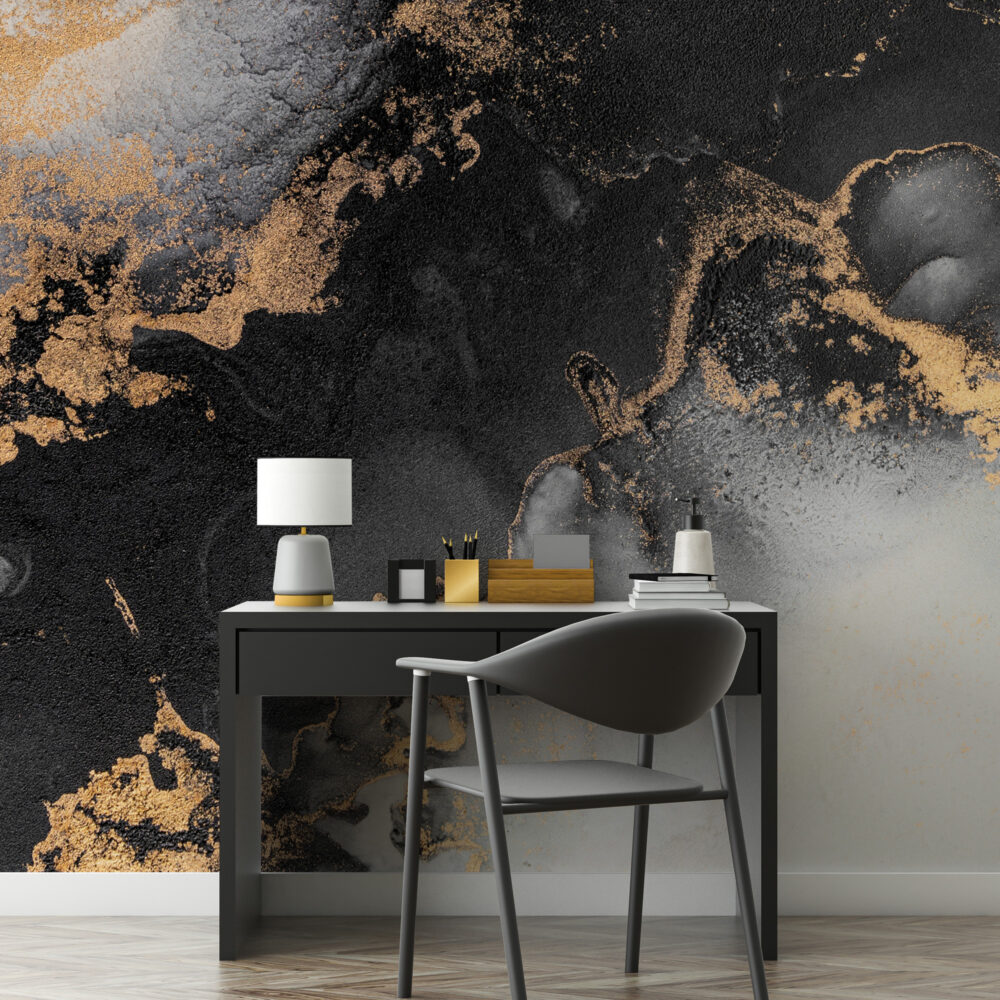 Gold ve Siyah Mermer Desen Duvar Kağıdı
