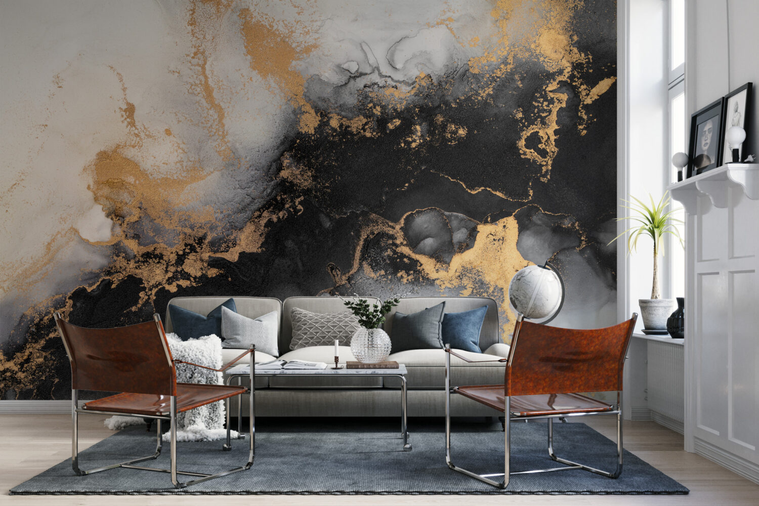 Gold ve Siyah Mermer Desen Duvar Kağıdı üretimi, uygulanmasını isteyeceğiniz boyut ve konumuna uygun olarak talepleriniz doğrultusunda size özel imal edilir.