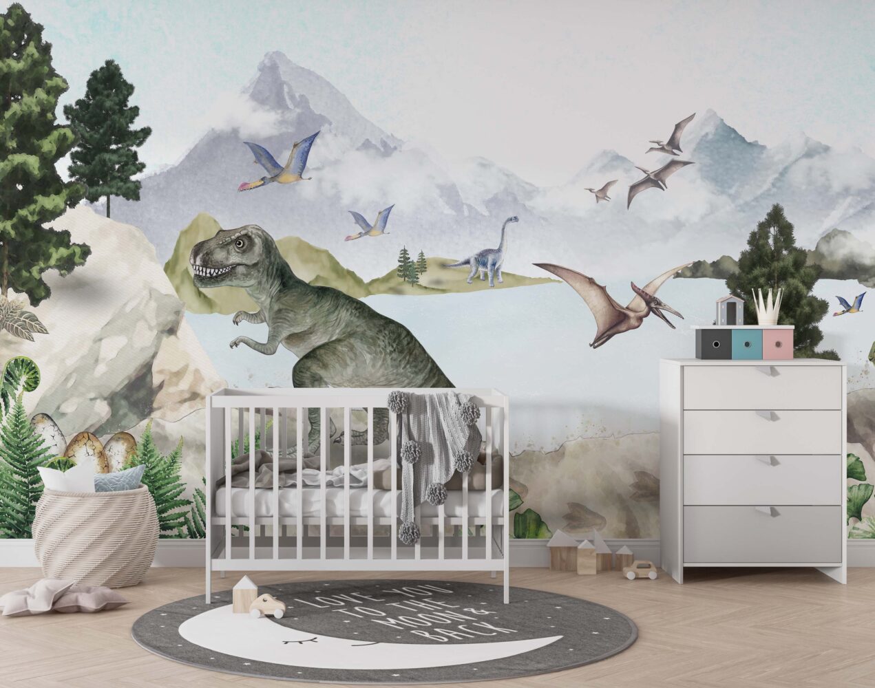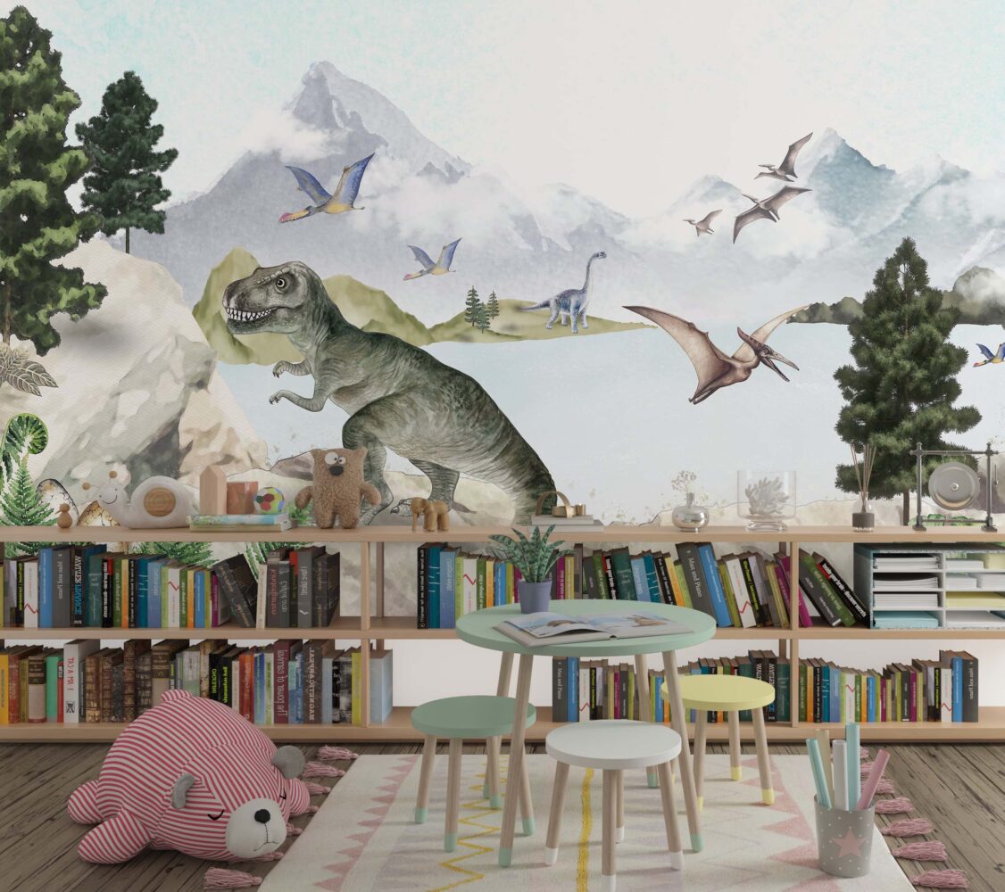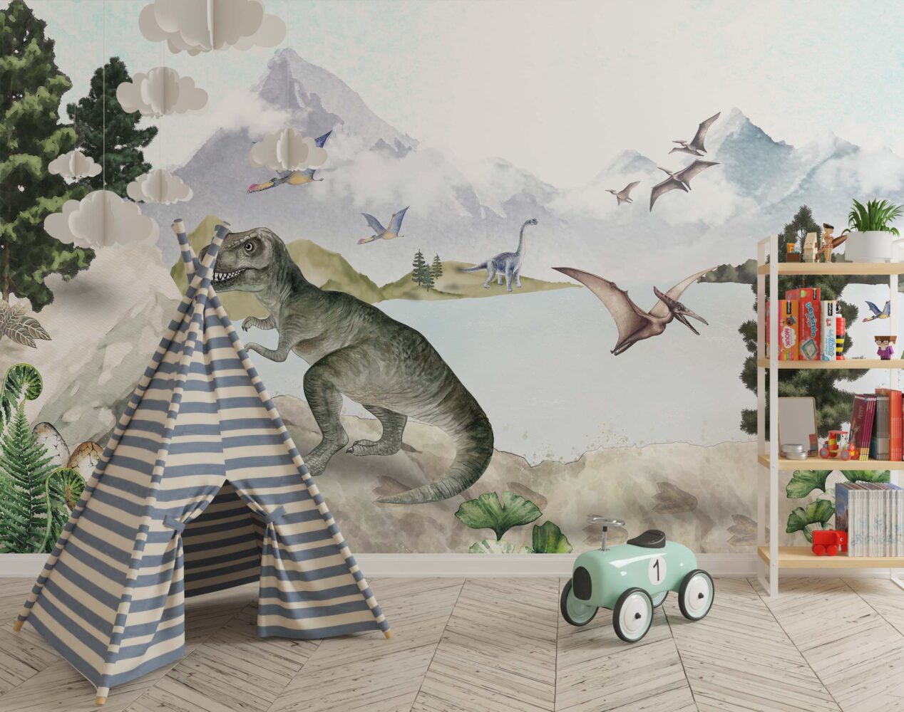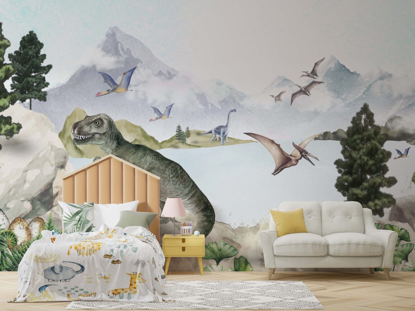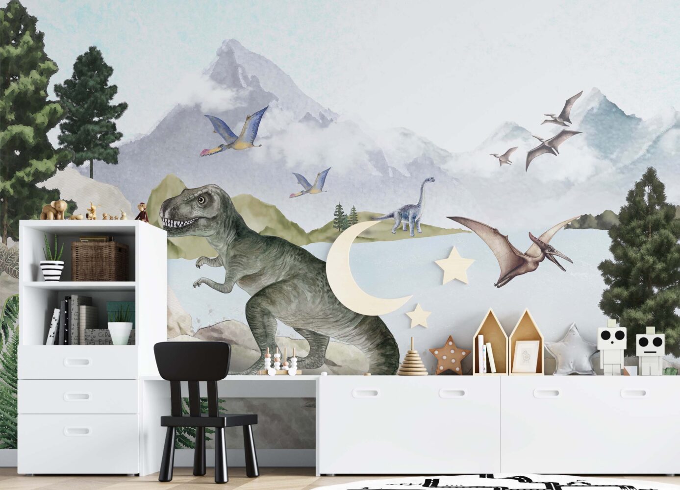 Gölün Kenarındaki Dinazorlar Duvar Kağıdı üretimi, uygulanmasını isteyeceğiniz boyut ve konumuna uygun olarak talepleriniz doğrultusunda size özel imal edilir.