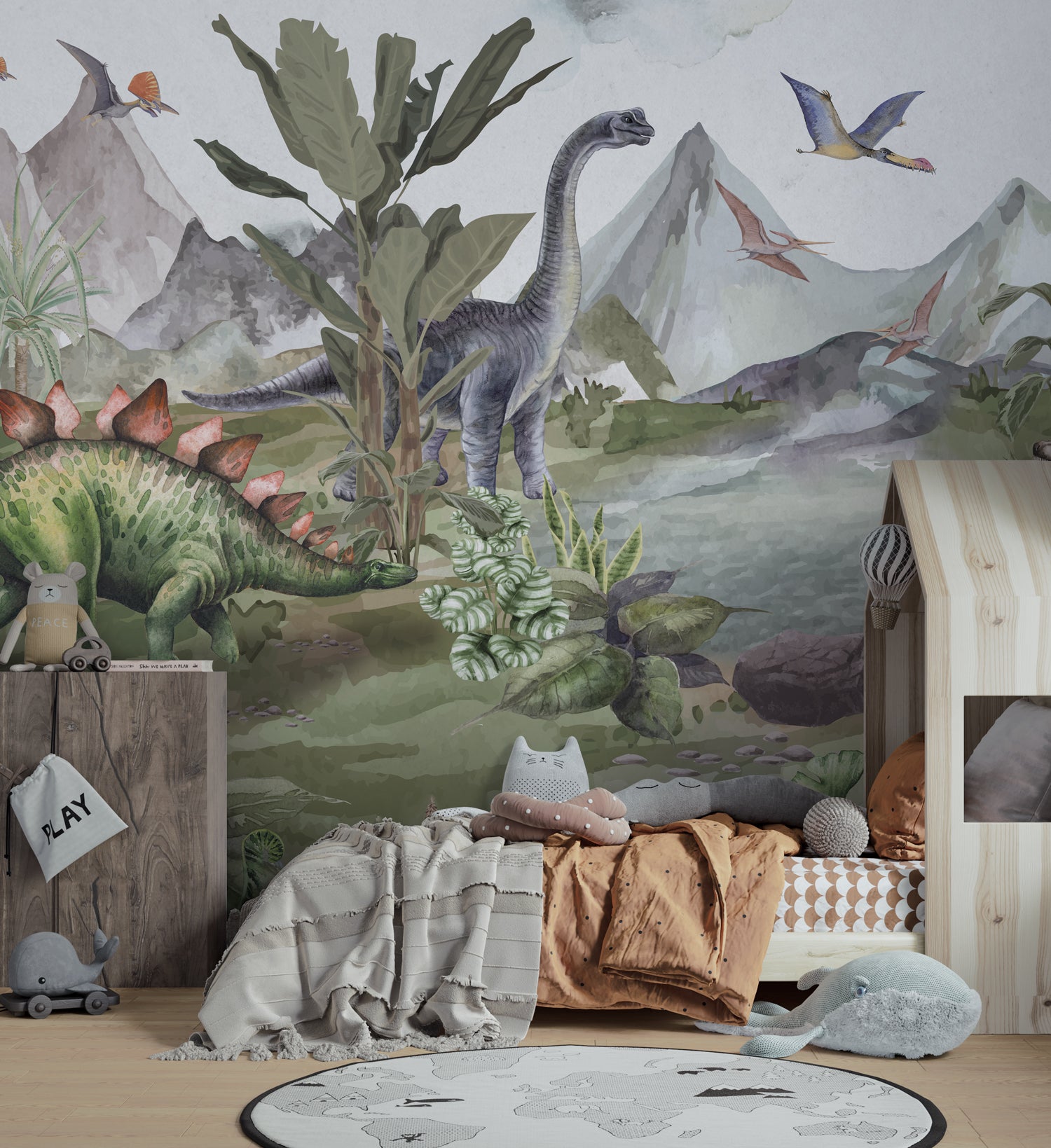 Gölün Yanındaki Dinazorlar Duvar Kağıdı üretimi, uygulanmasını isteyeceğiniz boyut ve konumuna uygun olarak talepleriniz doğrultusunda size özel imal edilir.