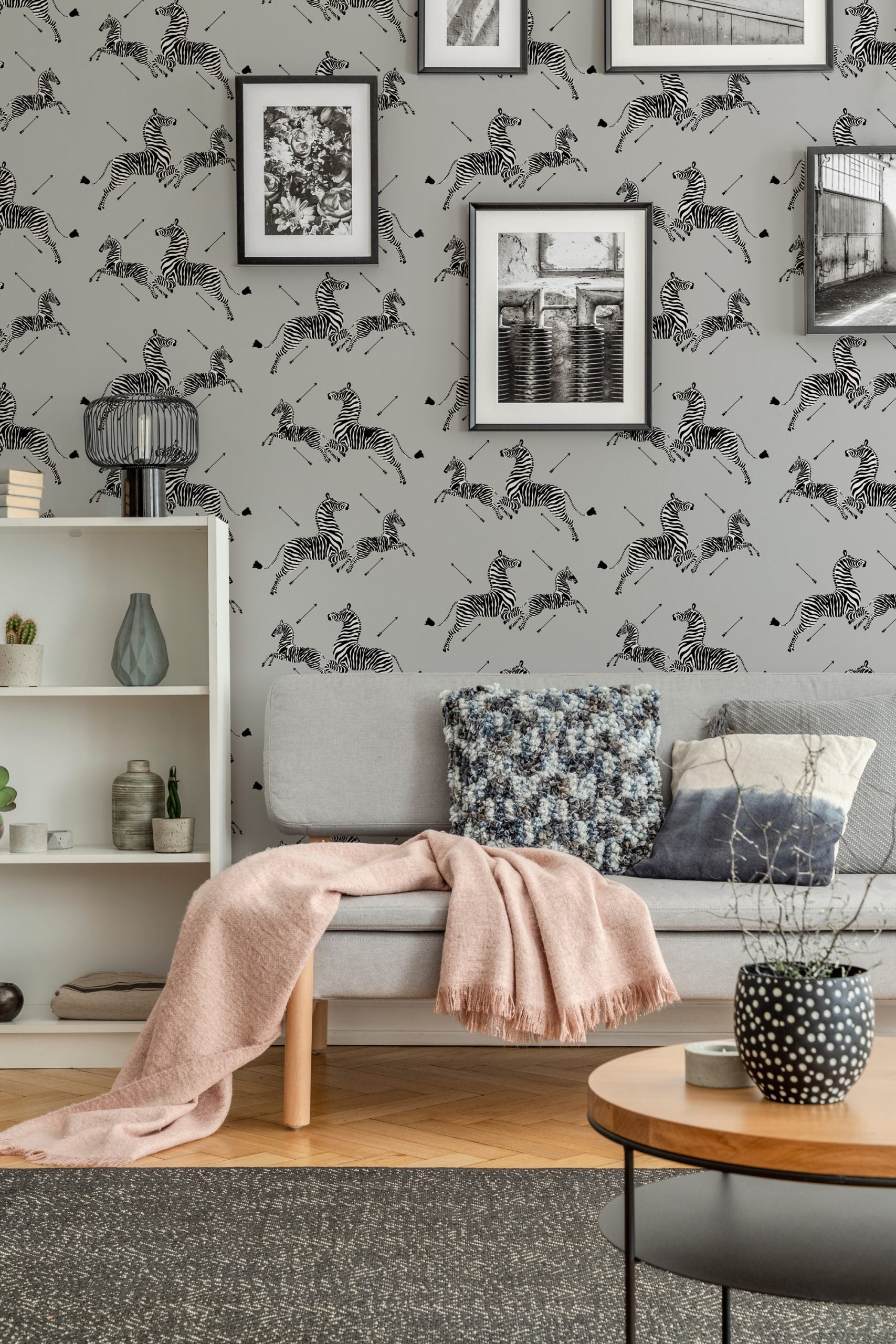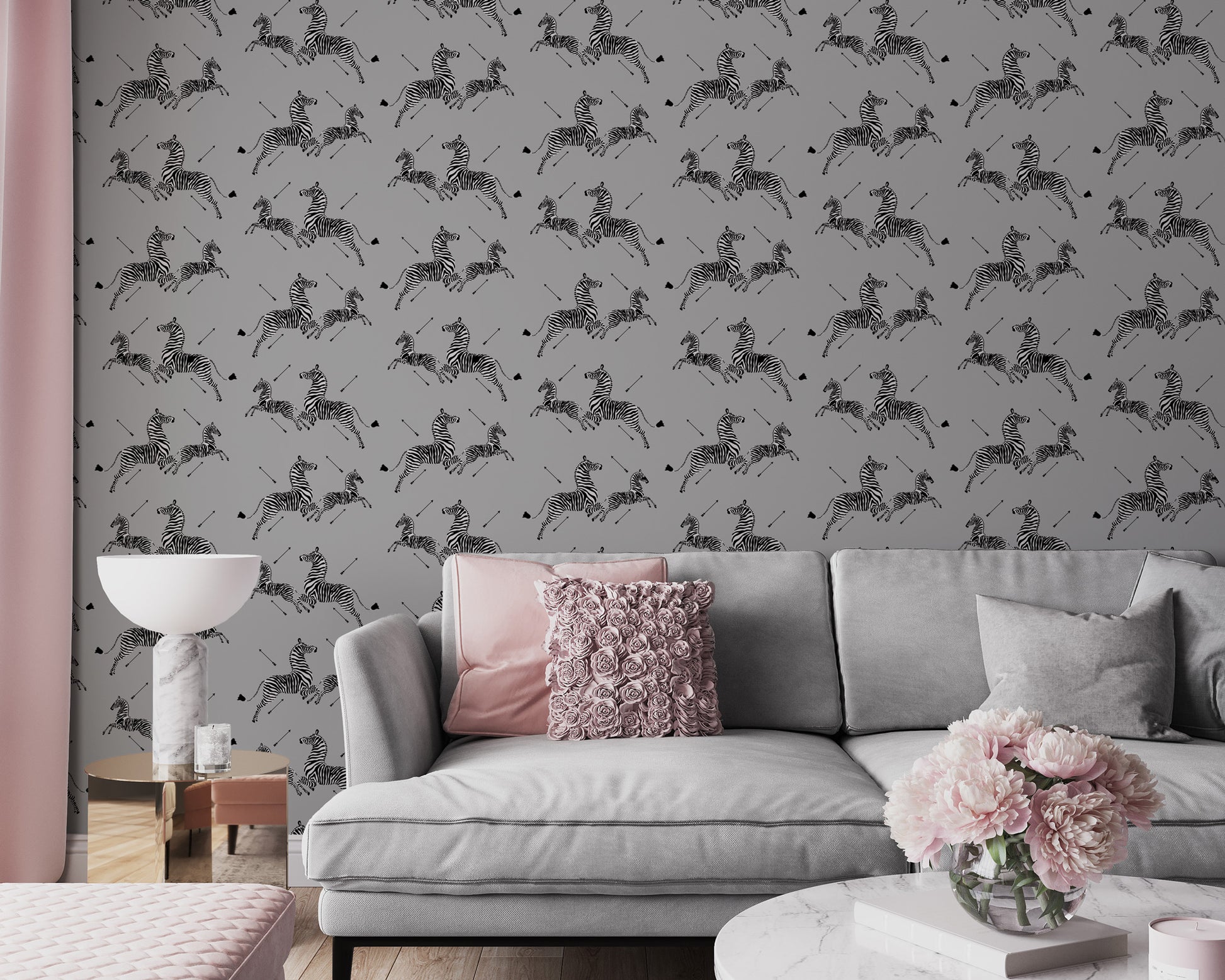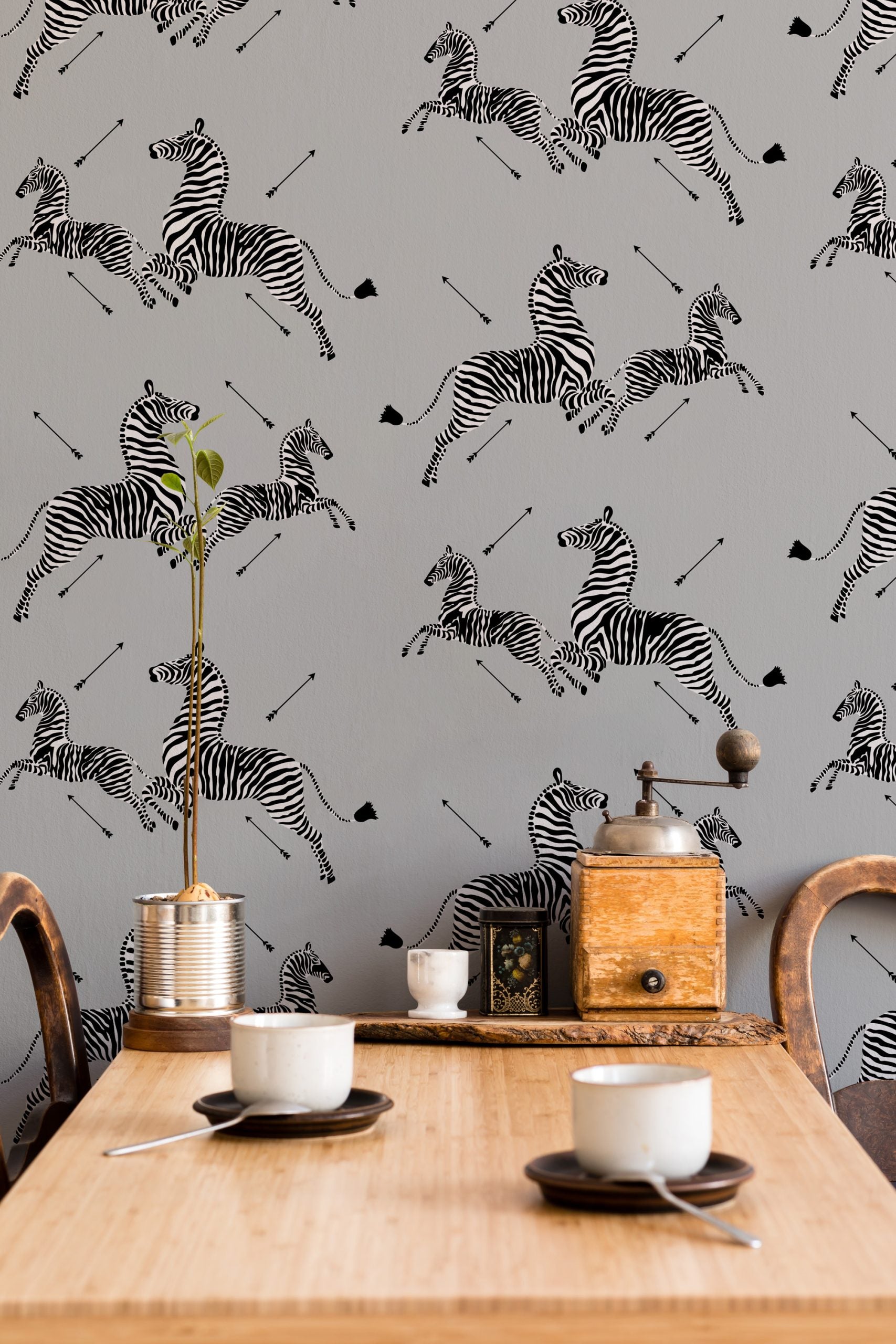 Gri Fonda Koşan Siyah Zebralar Duvar Kağıdı Duvar Kağıdı Ürün Bilgisi