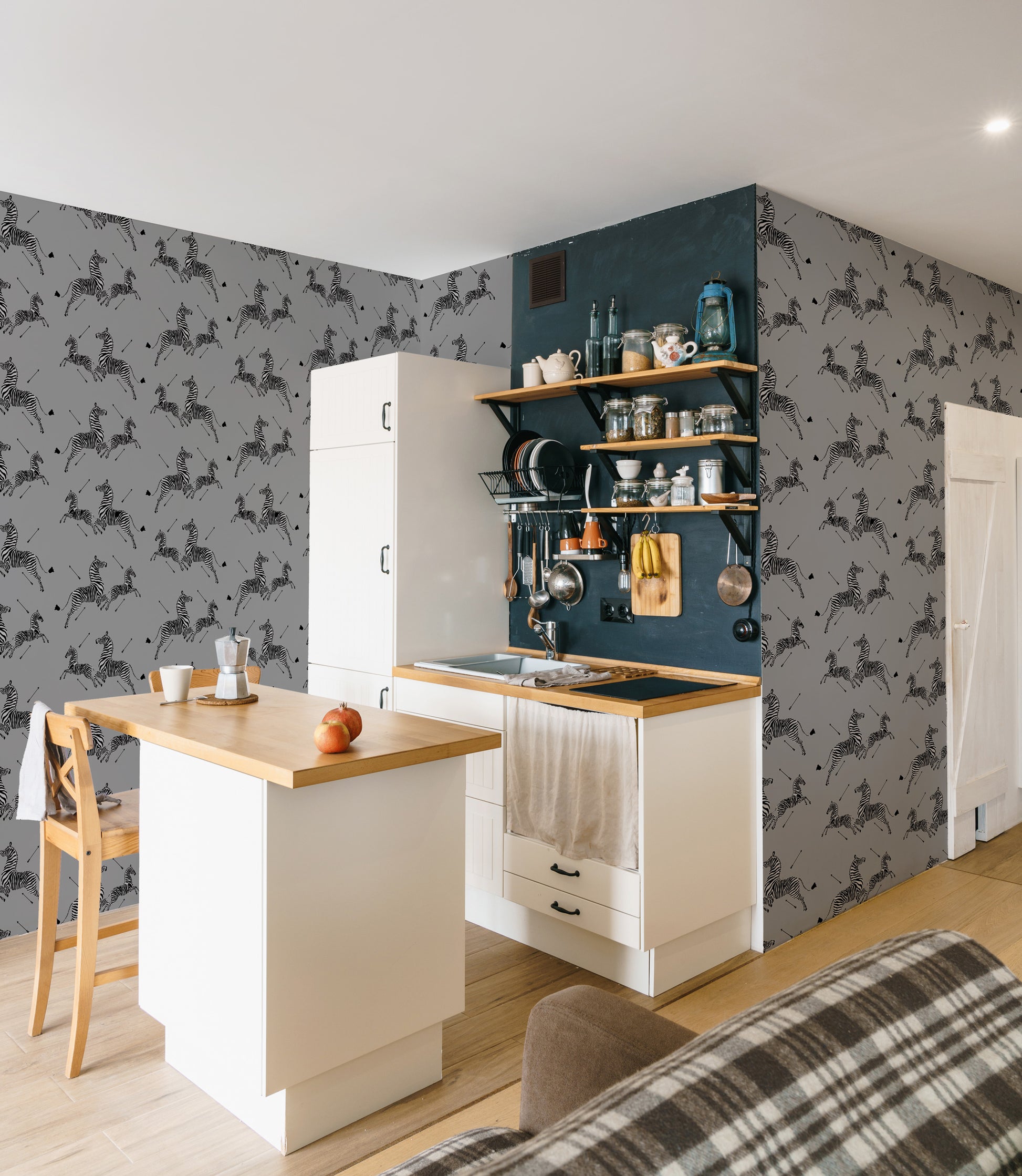 Gri Fonda Koşan Siyah Zebralar Duvar Kağıdı üretimi, uygulanmasını isteyeceğiniz boyut ve konumuna uygun olarak talepleriniz doğrultusunda size özel imal edilir.