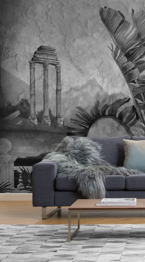 Gri Tonlarda Antik Şehre Bakan Tropikal Duvar Kağıdı Duvar Kağıdı Ürün Bilgisi