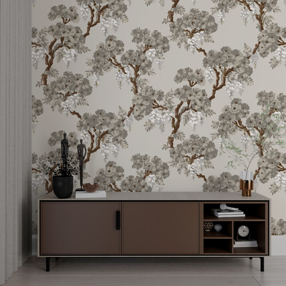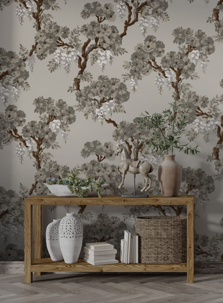 Gri Zemin de Salkım Çiçekleri Duvar kağıdı Duvar Kağıdı Ürün Bilgisi