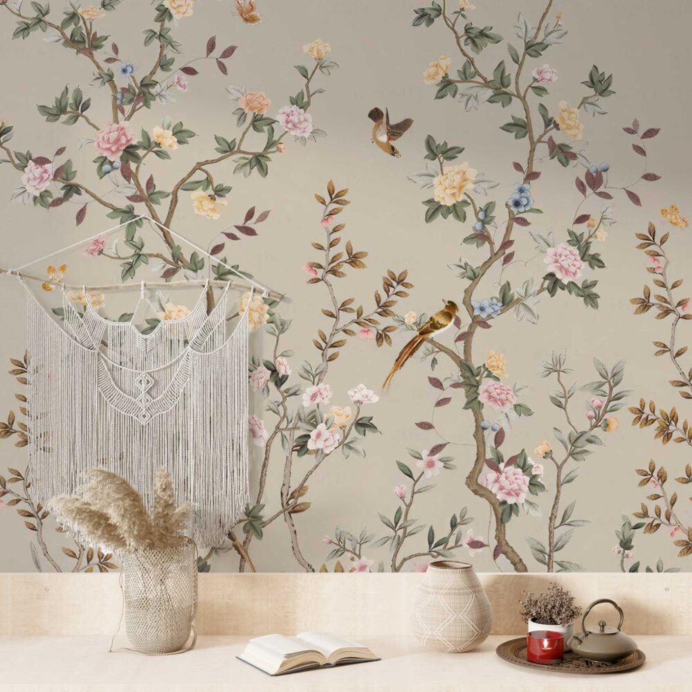 Gül Ağaçları Ve Kuşlar Duvar Kağıdı Duvar Kağıdı Ürün Bilgisi