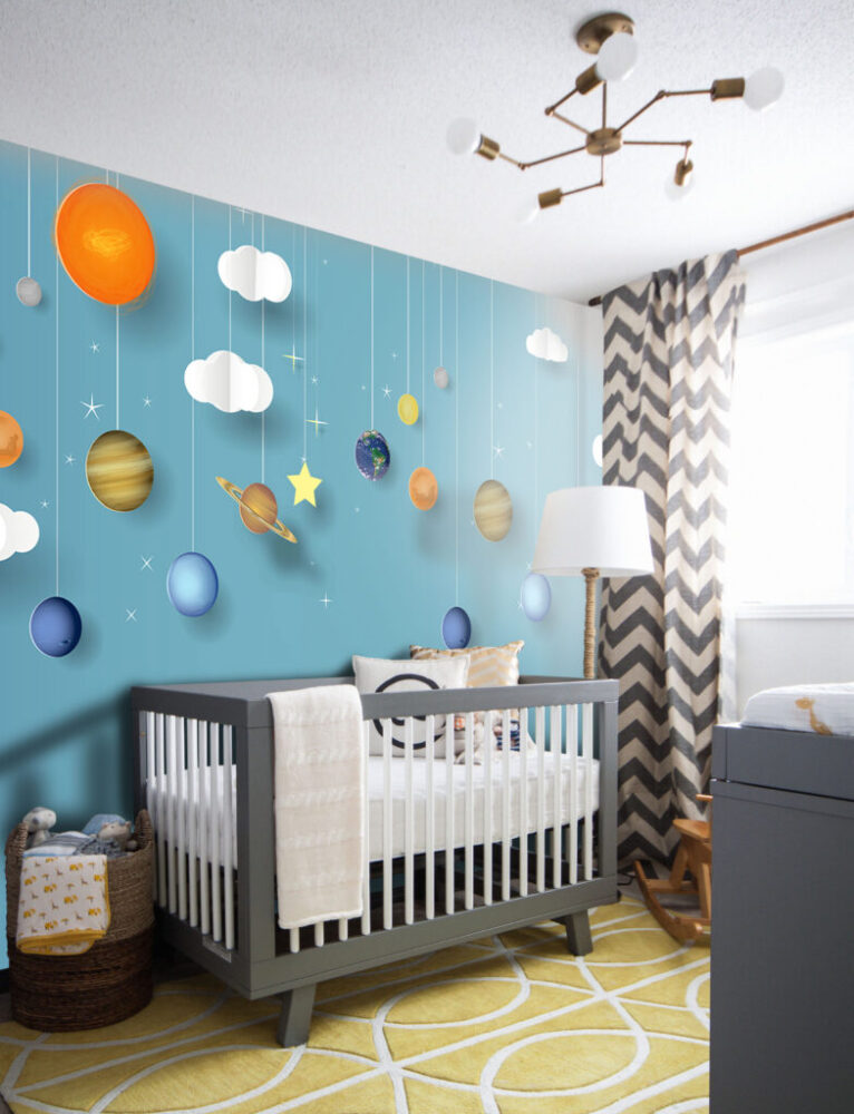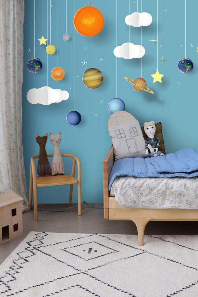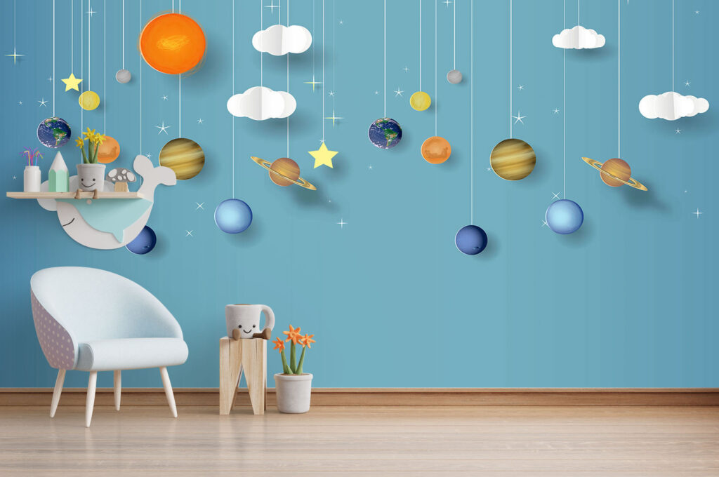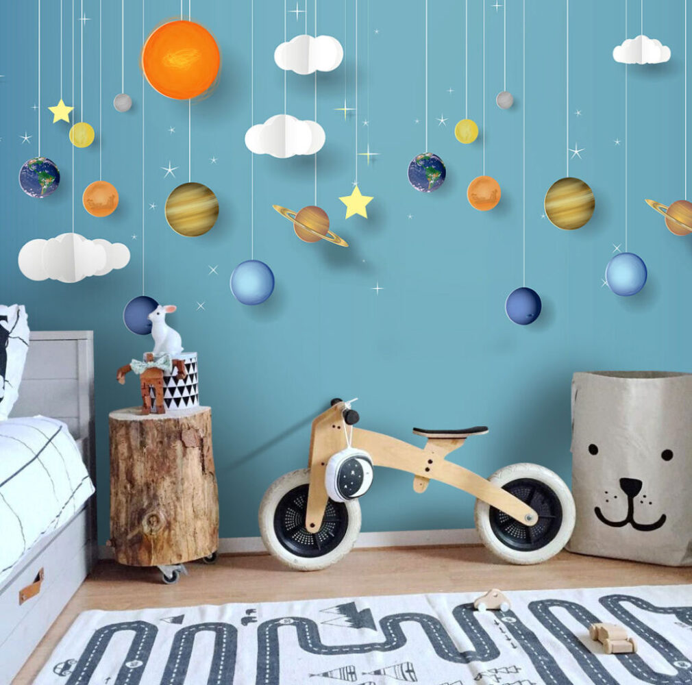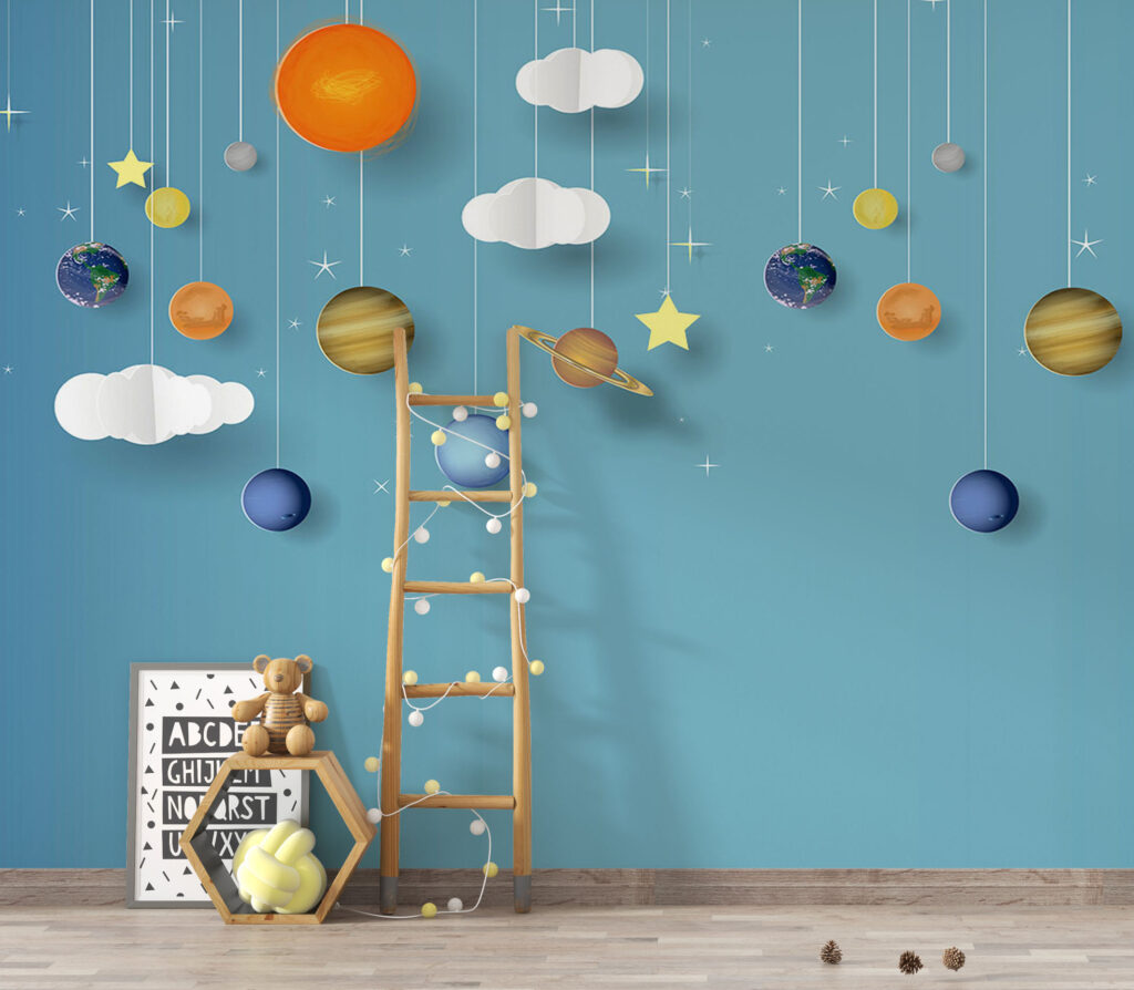 Güneş Sistemi ve Bulut Desenli 3D Duvar Kağıdı | Duvar Kağıdı Marketi üretimi, uygulanmasını isteyeceğiniz boyut ve konumuna uygun olarak talepleriniz doğrultusunda size özel imal edilir.