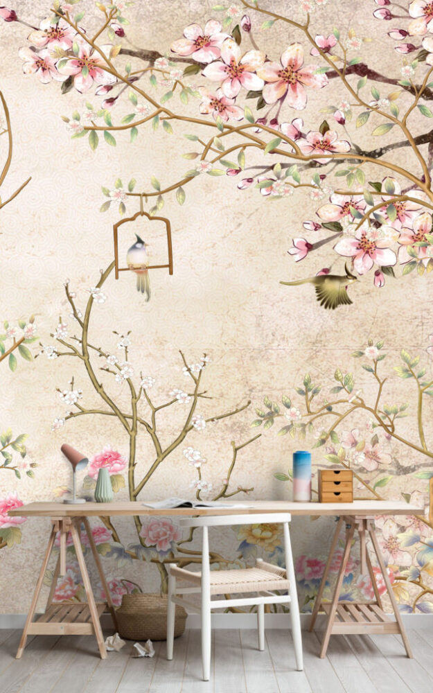 İlkbahar Mevsim Çiçekli Ağaç Desenli 3D Duvar Kağıdı Duvar Kağıdı Ürün Bilgisi