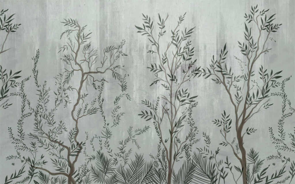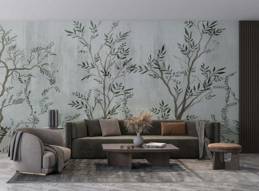 İnce Bitki Desenli 3D Duvar Kağıdı