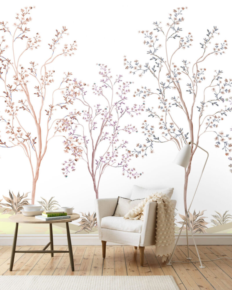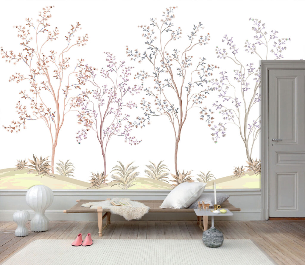 İnce Dallı Ağaç Desenli 3D Duvar Kağıdı