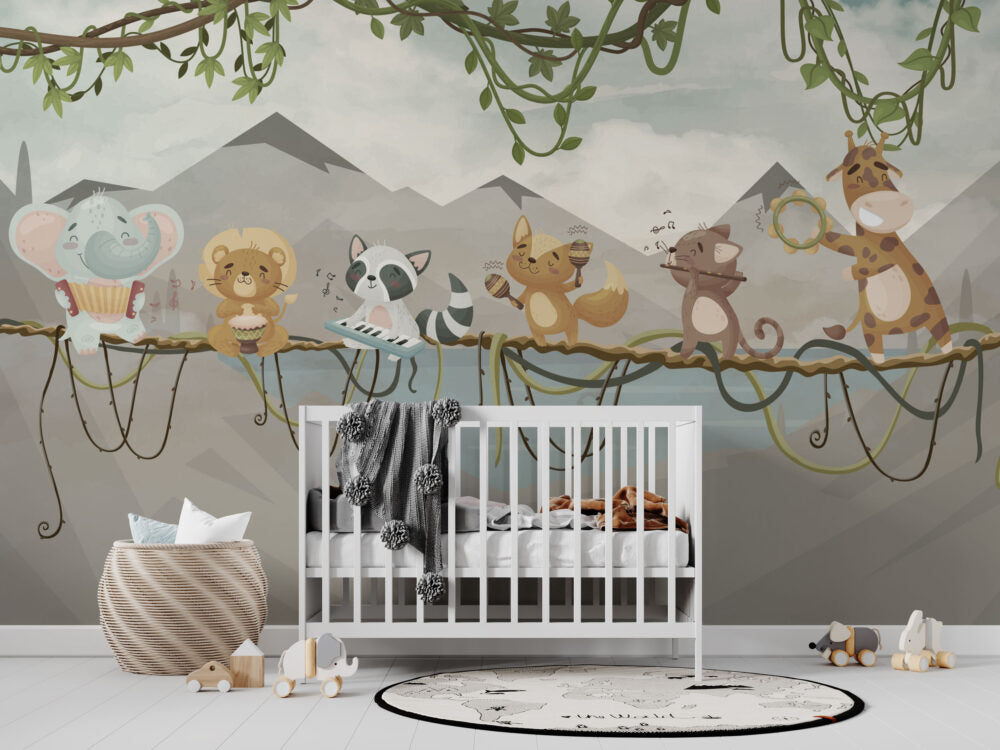 İpte Müzik Yapan Hayvanlar Duvar Kağıdı | Duvar Kağıdı Marketi Duvar Kağıdı Ürün Bilgisi