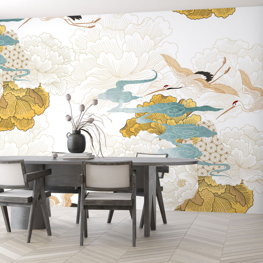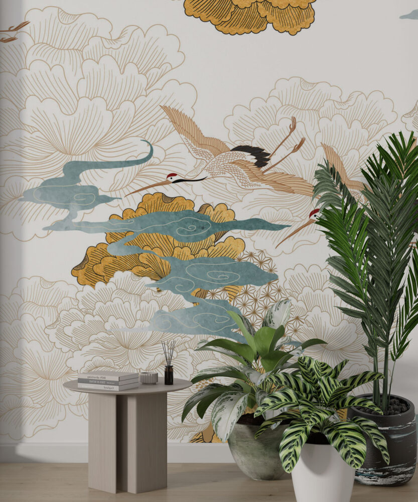 Japon Turna Kuşları Gold Çiçekler Duvar Kağıdı üretimi, uygulanmasını isteyeceğiniz boyut ve konumuna uygun olarak talepleriniz doğrultusunda size özel imal edilir.