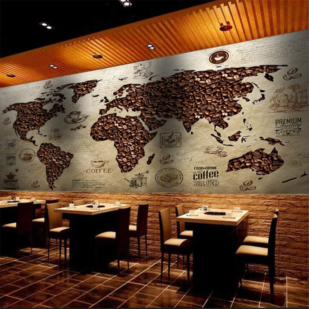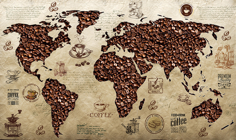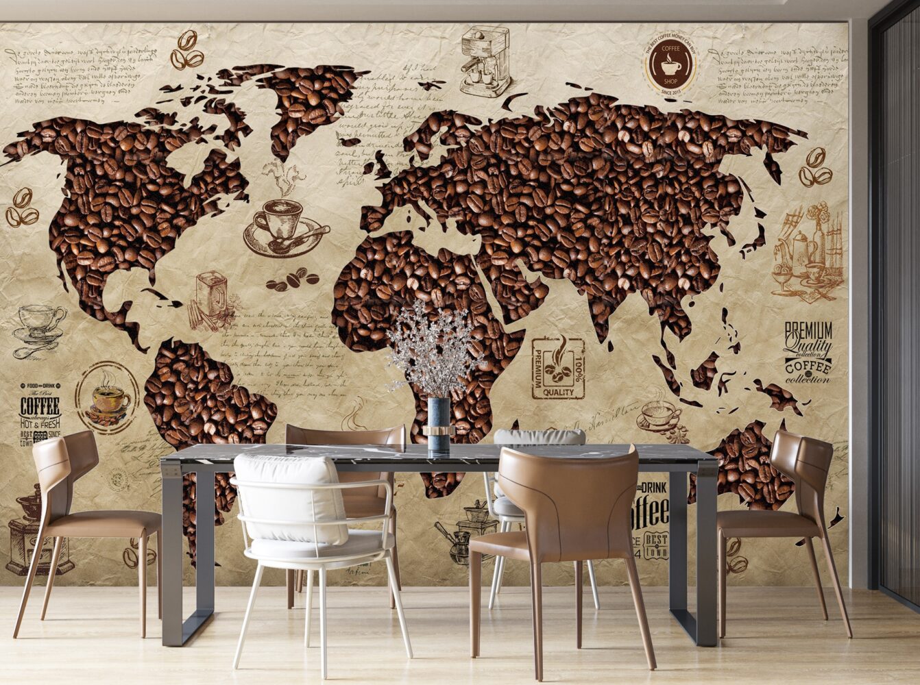 Kahve Çekirdekleri Desenli Dünya Haritası Duvar Kağıdı Duvar Kağıdı Ürün Bilgisi