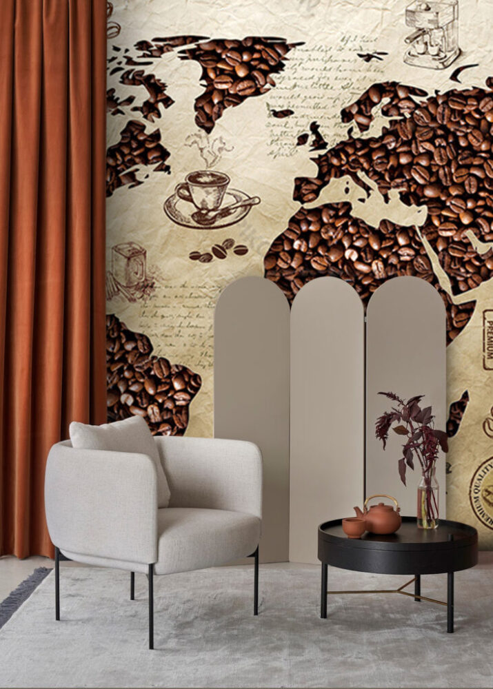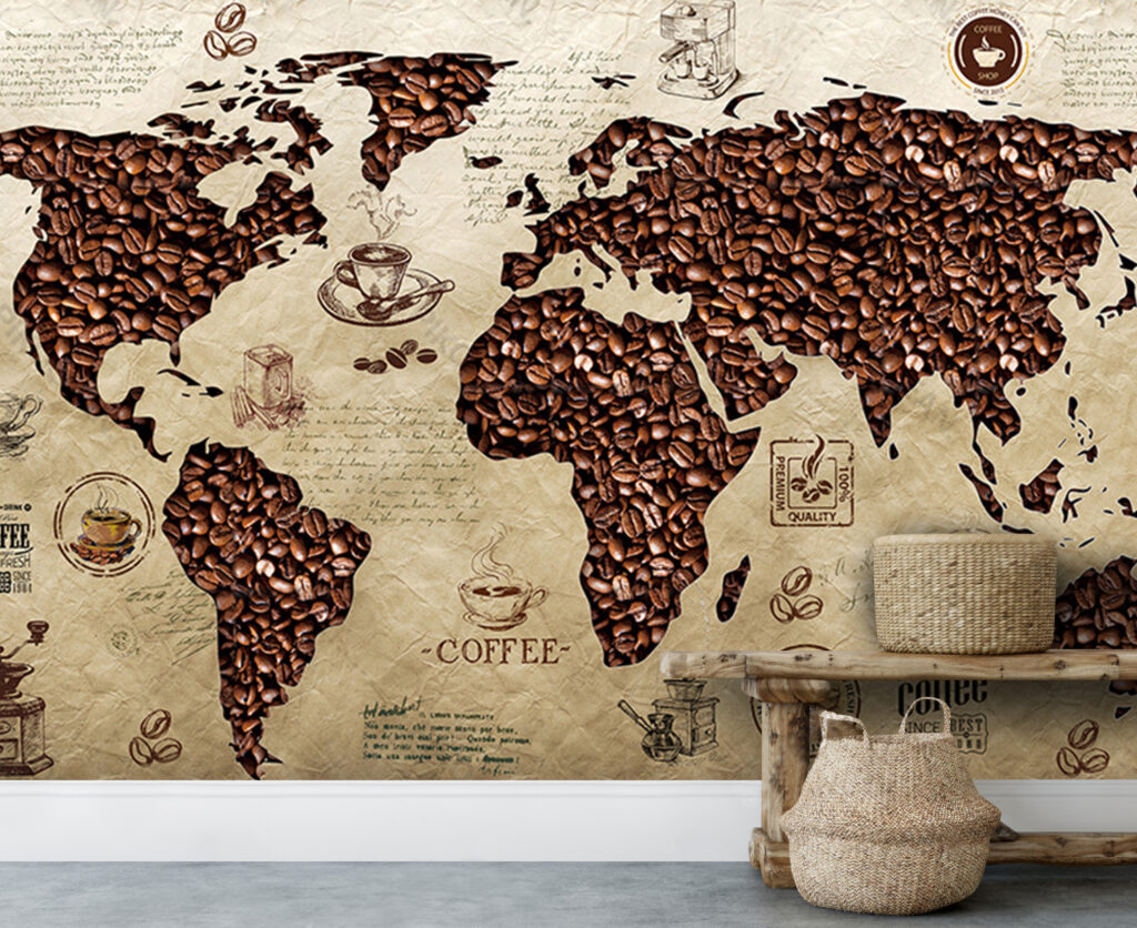 Kahve Desenli Dünya Haritalı 3D Duvar Kağıdı Duvar Kağıdı Ürün Bilgisi