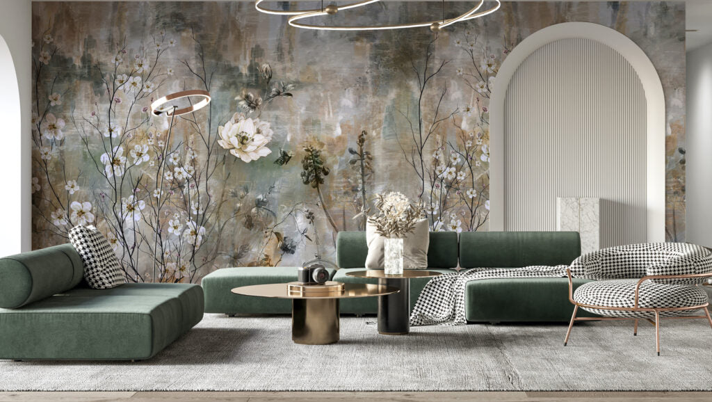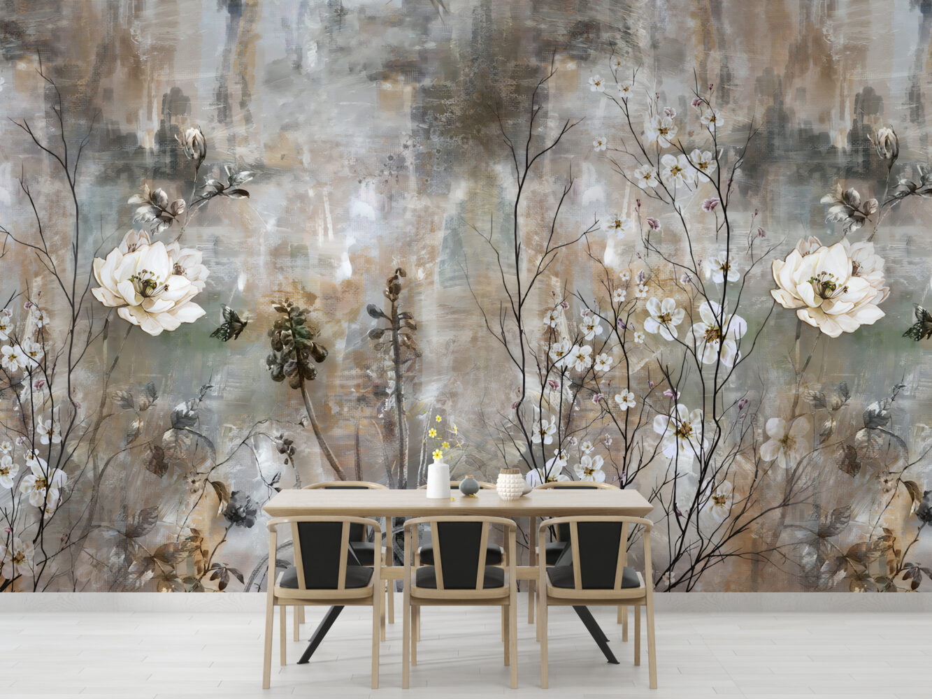 Kahve Tonlarında Çiçek Desenli 3D Duvar Kağıdı