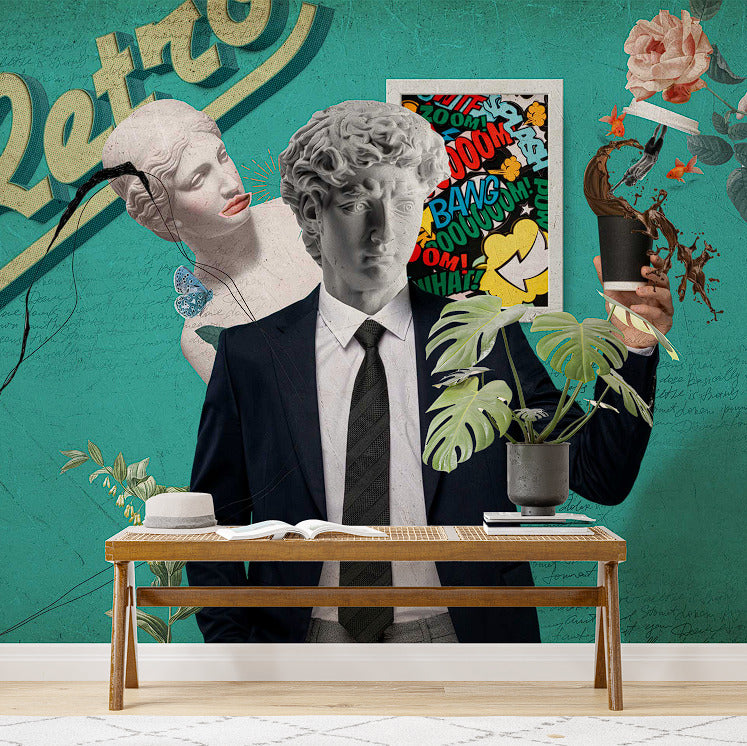 Kahve Tutan Taş Adamlı Duvar Kağıdı | Duvar Kağıdı Marketi