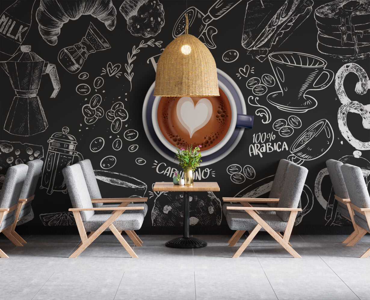 Kahveciler İçin Özel Tasarım Duvar Kağıdı