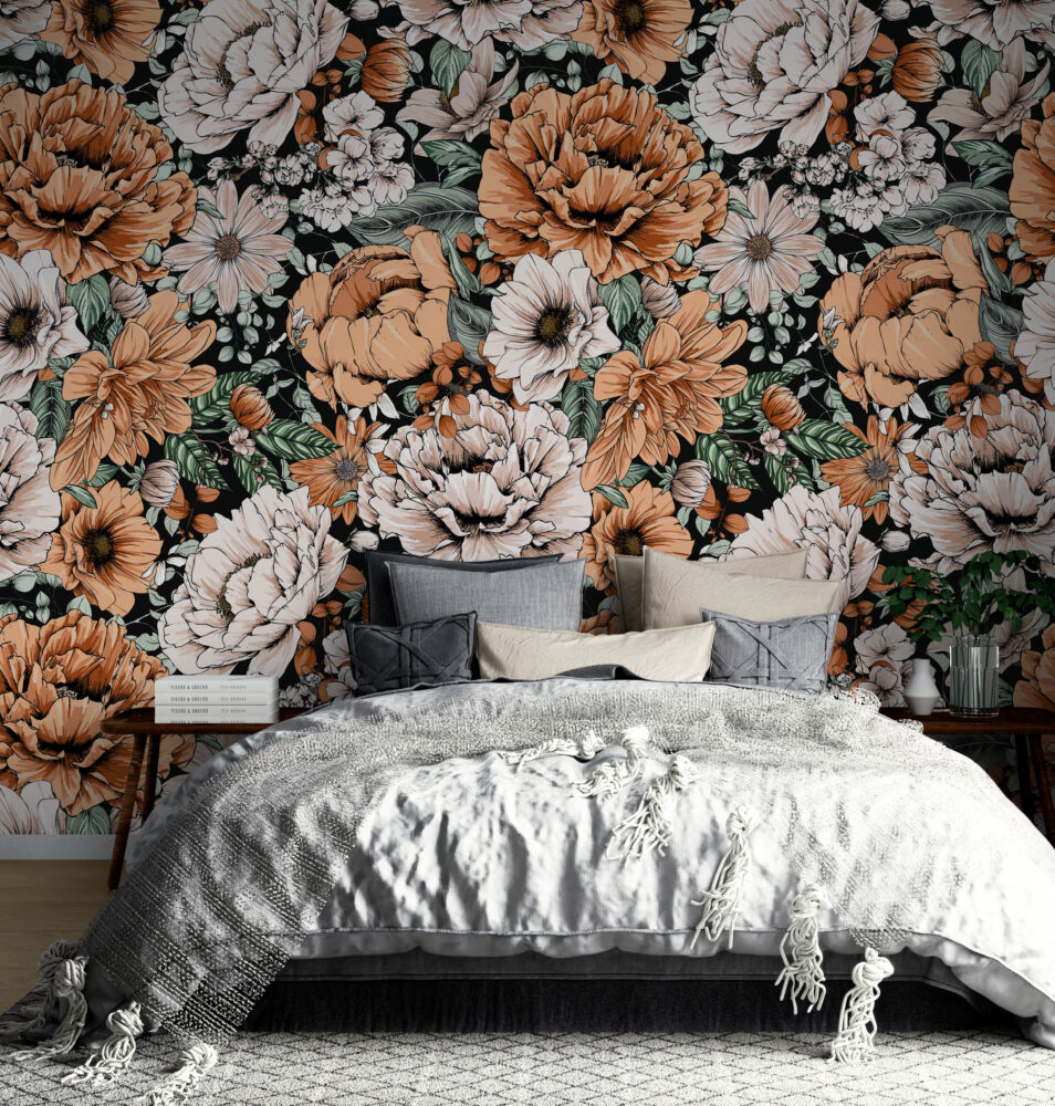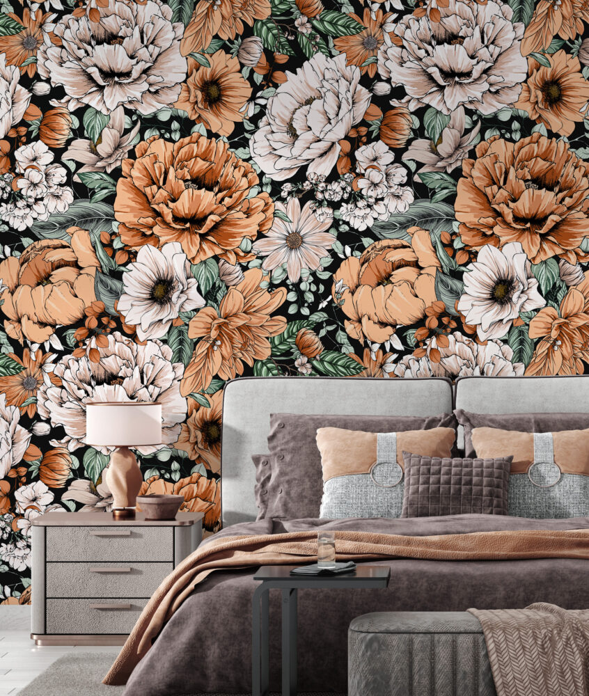 Kahverengi Beyaz Güller Tekrar Desenli Duvar Kağıdı üretimi, uygulanmasını isteyeceğiniz boyut ve konumuna uygun olarak talepleriniz doğrultusunda size özel imal edilir.