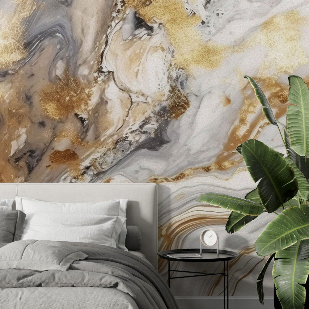 Kahverengi Damarlı Mermer Desen Duvar Kağıdı