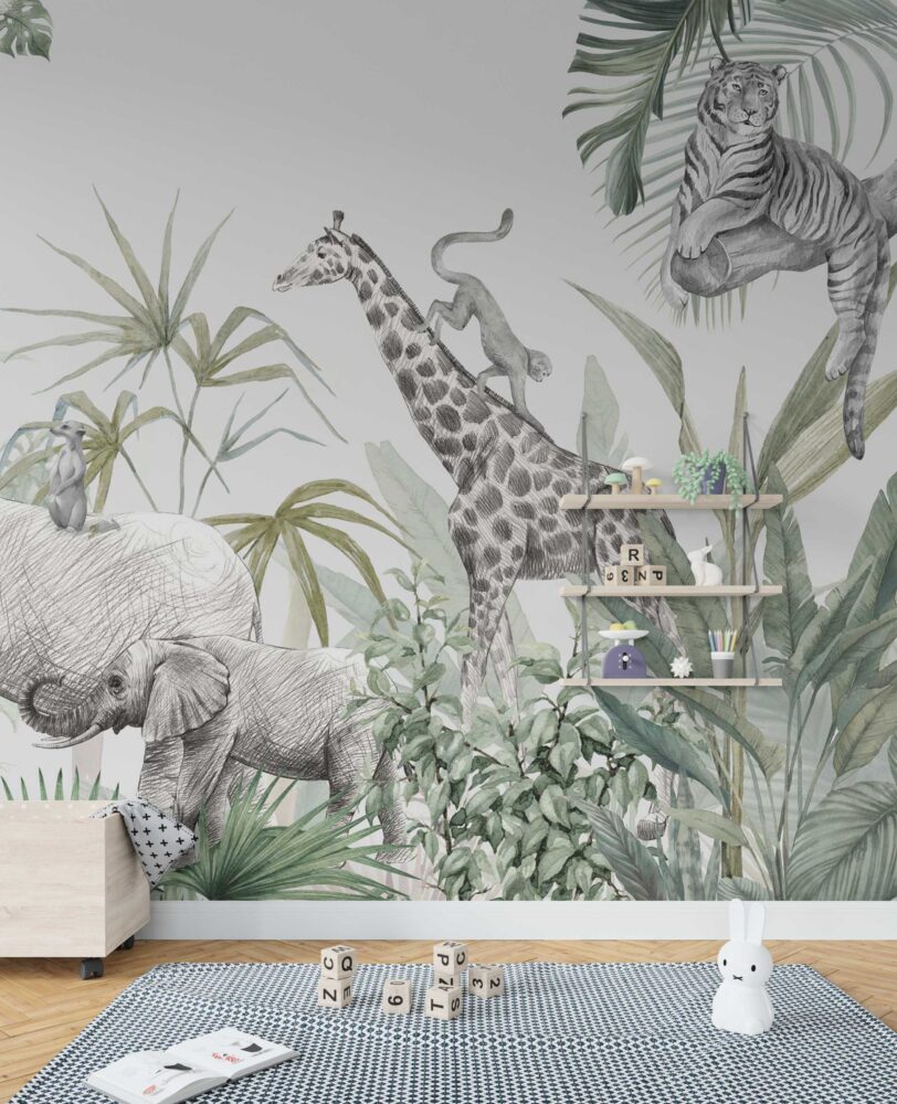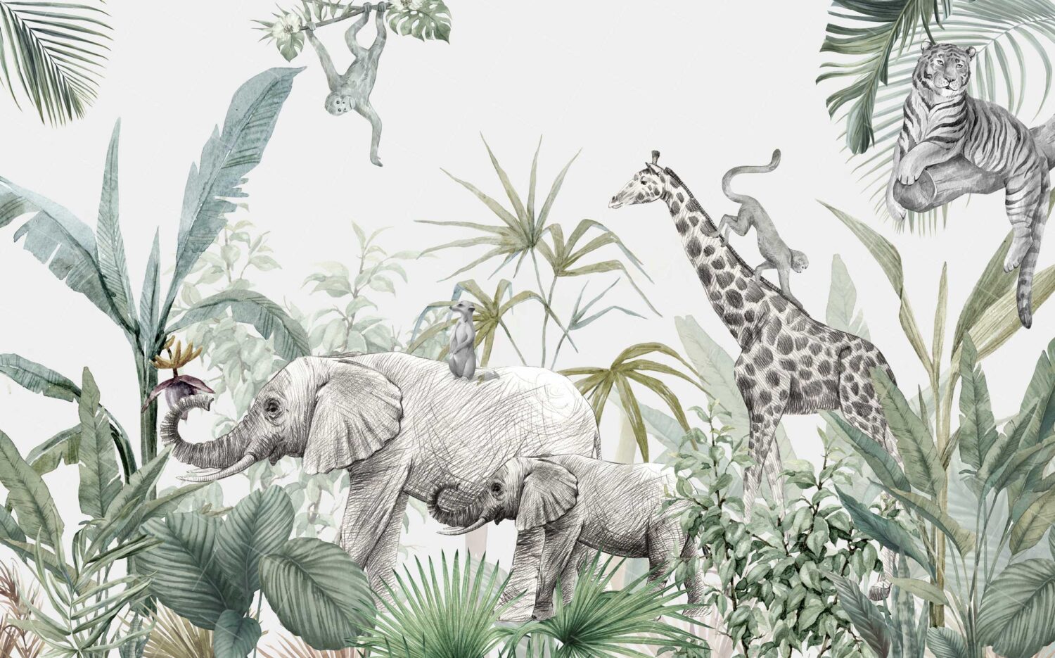 Karakalem Stili Hayvanlar ve Soft Tropikal Duvar Kağıdı Duvar Kağıdı Ürün Bilgisi