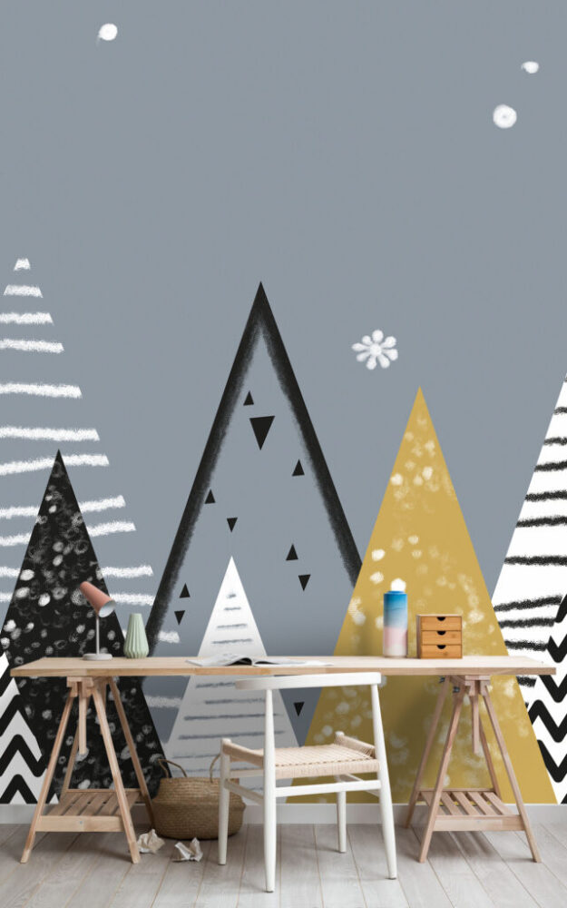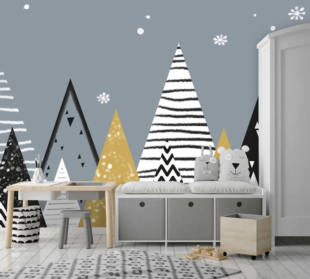 Karlı Üçgen Ağaç Desenli 3D Duvar Kağıdı | Duvar Kağıdı Marketi üretimi, uygulanmasını isteyeceğiniz boyut ve konumuna uygun olarak talepleriniz doğrultusunda size özel imal edilir.