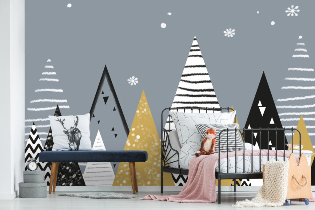 Karlı Üçgen Ağaç Desenli 3D Duvar Kağıdı | Duvar Kağıdı Marketi Duvar Kağıdı Ürün Bilgisi