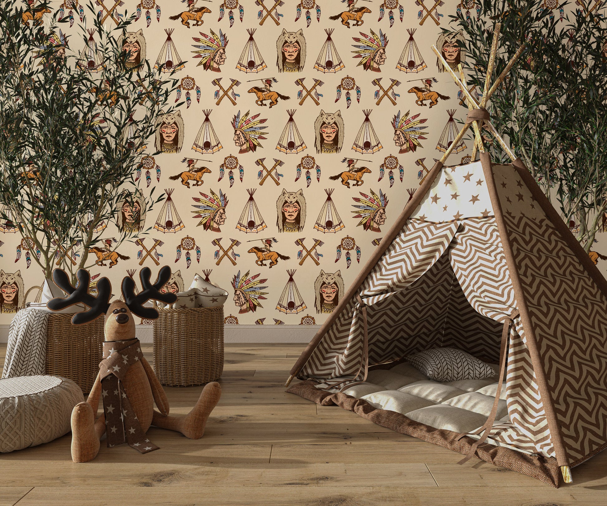 Kızılderili Temalı Bej Duvar Kağıdı üretimi, uygulanmasını isteyeceğiniz boyut ve konumuna uygun olarak talepleriniz doğrultusunda size özel imal edilir.