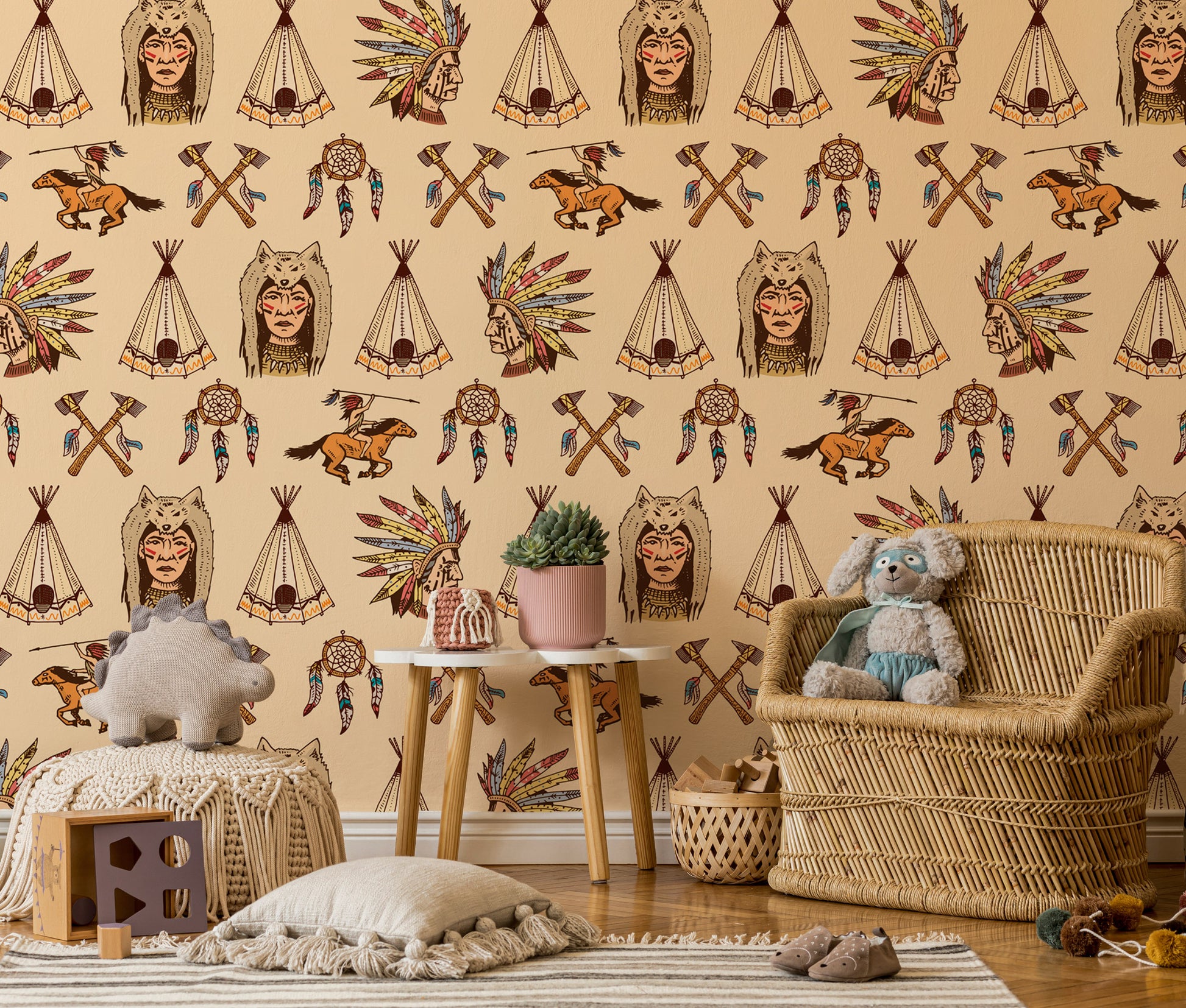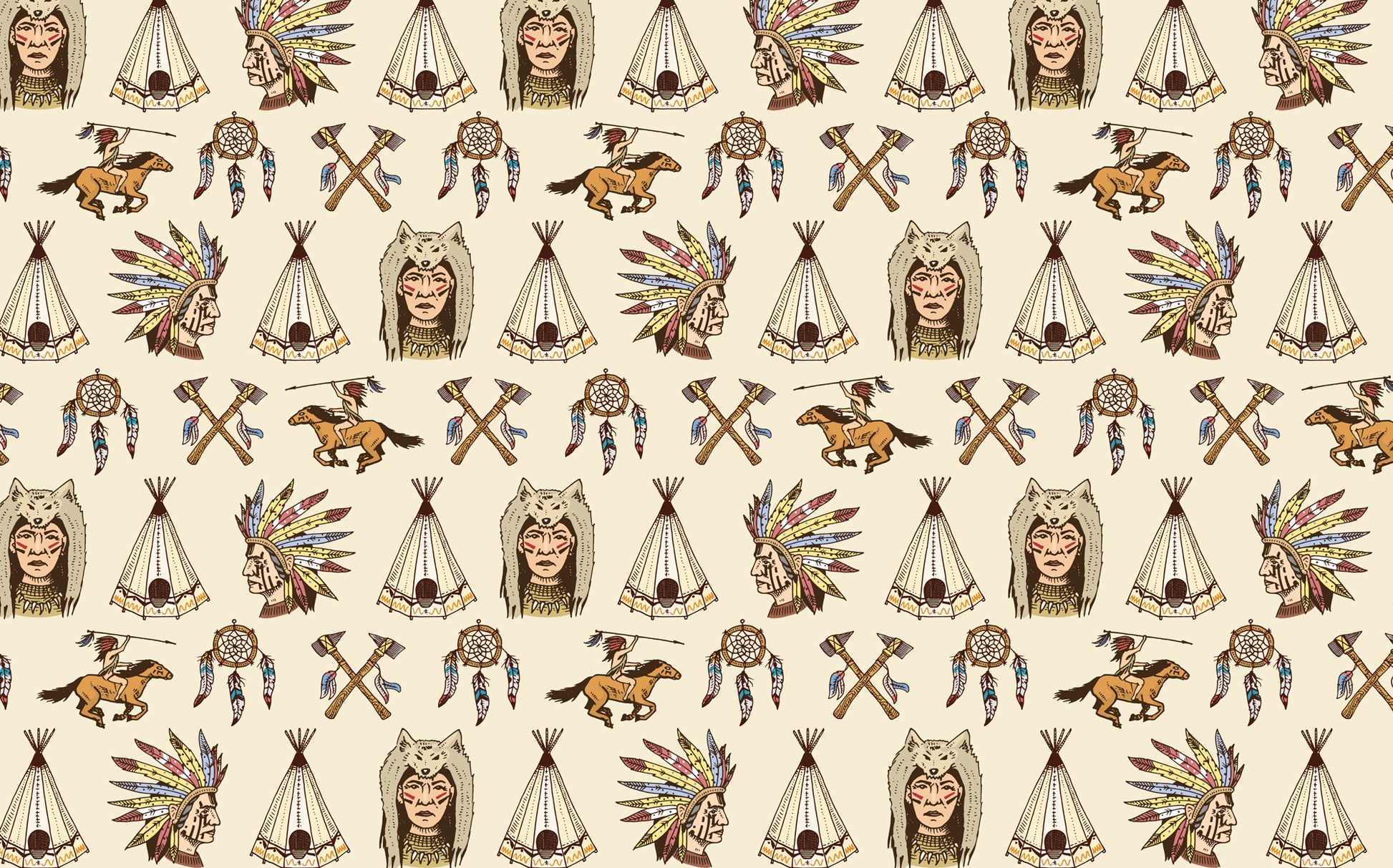 Kızılderili Temalı Bej Duvar Kağıdı