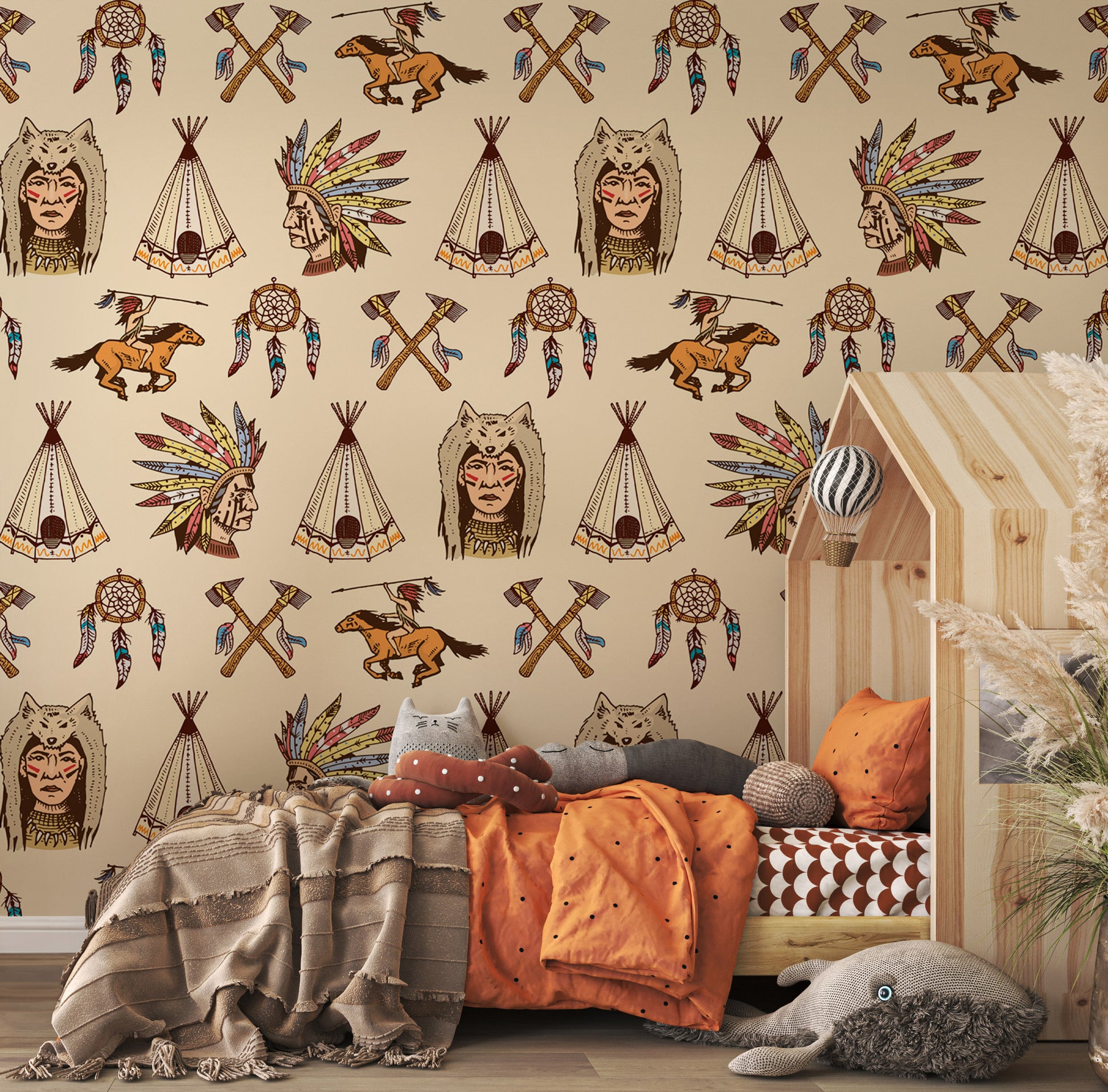 Kızılderili Temalı Bej Duvar Kağıdı Duvar Kağıdı Ürün Bilgisi