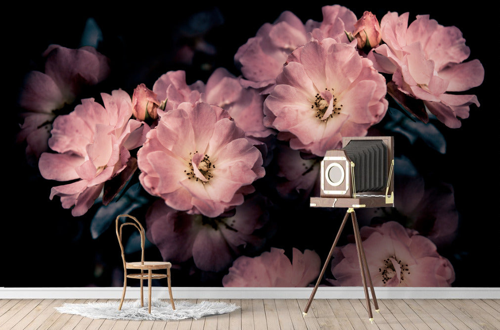Koyu Papatya Çiçek Desenli 3D Duvar Kağıdı